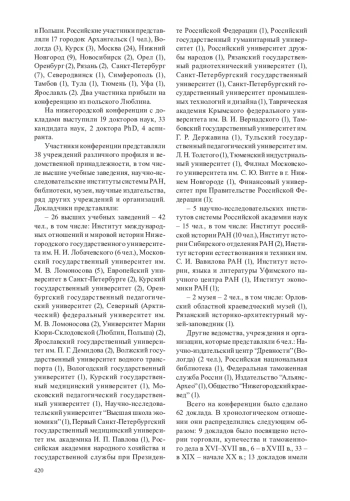 Три предыдущие конференции на эту тему прошли в 2001 г. в Санкт-Петербурге в Санкт-Петербургском институте истории РАН (хронологические рамки первой конференции были ограничены XVI–XVIII вв.), в 2009 г. в Курске в Курском государственном университете и в 2013 г. в Коломне в Московском государственном областном социально-гуманитарном институте. Следует особо отметить, что начиная с 2009 г. изначально заданный четырехгодичный цикл в проведении этих научных мероприятий четким образом выдерживается уже второй раз подряд.