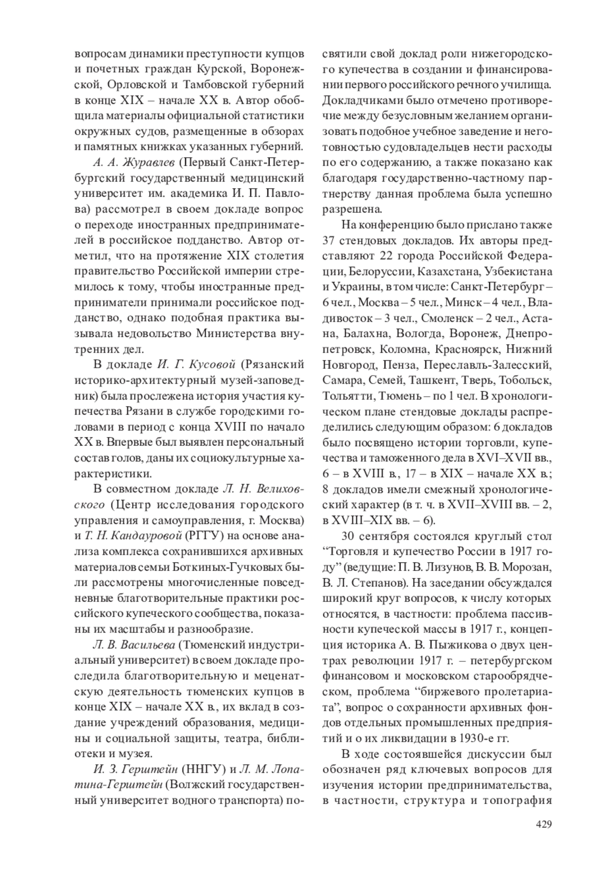 С 28 по 30 сентября 2017 г. в Нижнем Новгороде на базе Института международных отношений и мировой истории Национального исследовательского Нижегородского государственного университета им. Н. И. Лобачевского (ИМОМИ ННГУ) состоялась Четвертая международная научная конференция “Торговля, купечество и таможенное дело в России в XVI–XIX вв.” (председатель оргкомитета – доцент ИМОМИ ННГУ В. Н. Беляева).
