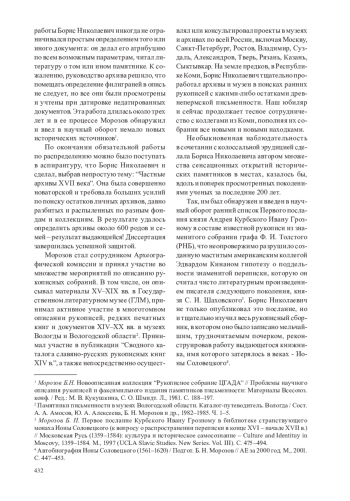 3. Морозов Б. Н. Первое послание Курбского Ивану Грозному в библиотеке странствующего монаха Ионы Соловецкого (к вопросу о распространении переписки в конце XVI - начале XVII в.) // Московская Русь (1359-1584): культура и историческое самосознание - Culture and Identituy in Moscovy, 1359-1584. M., 1997 (ИСГА Slavic Studies. New Series. Vol. III). C. 475-494. EDN: UJDLND