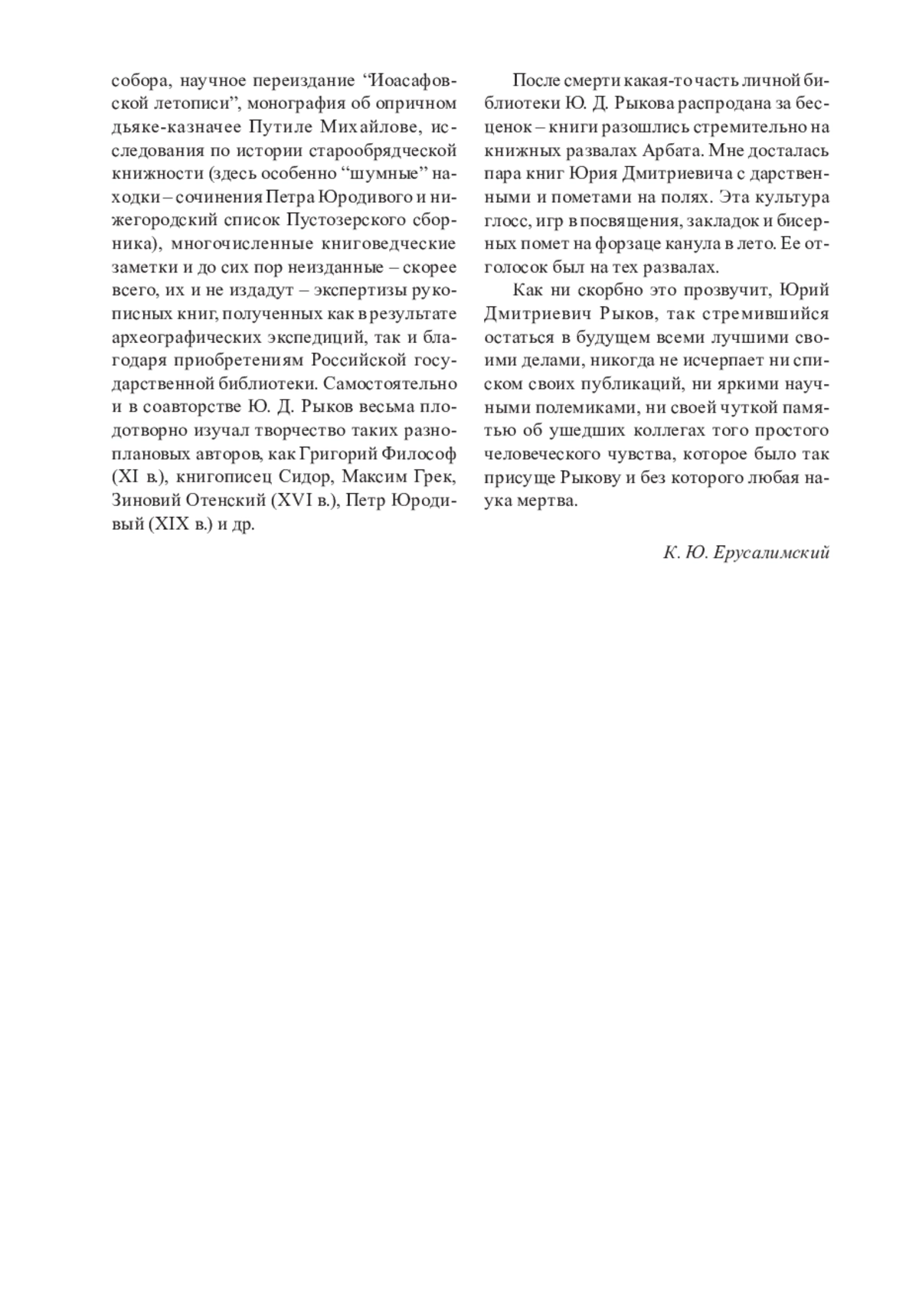 2. Филюшкин А. И. Юрий Дмитриевич Рыков (07.12.1946-22.04.2020) // Studia Slavica et Balcanica Petropolitana. 2020. № 1 (27). С. 223-227. EDN: QYAUMU