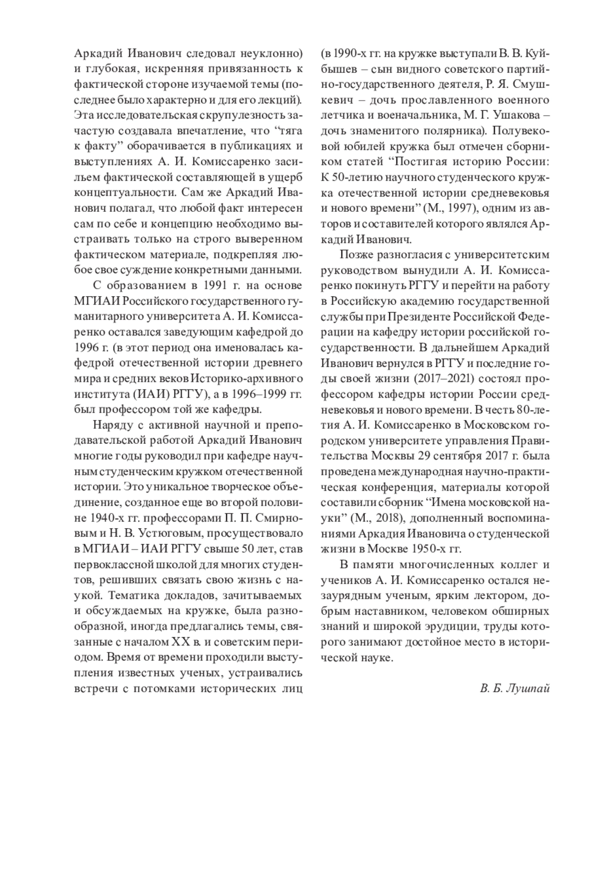 ЛУШПАЙ В.Б. АРКАДИЙ ИВАНОВИЧ КОМИССАРЕНКО (1937–2021) // АРХЕОГРАФИЧЕСКИЙ ЕЖЕГОДНИК. 2024. ТОМ 1