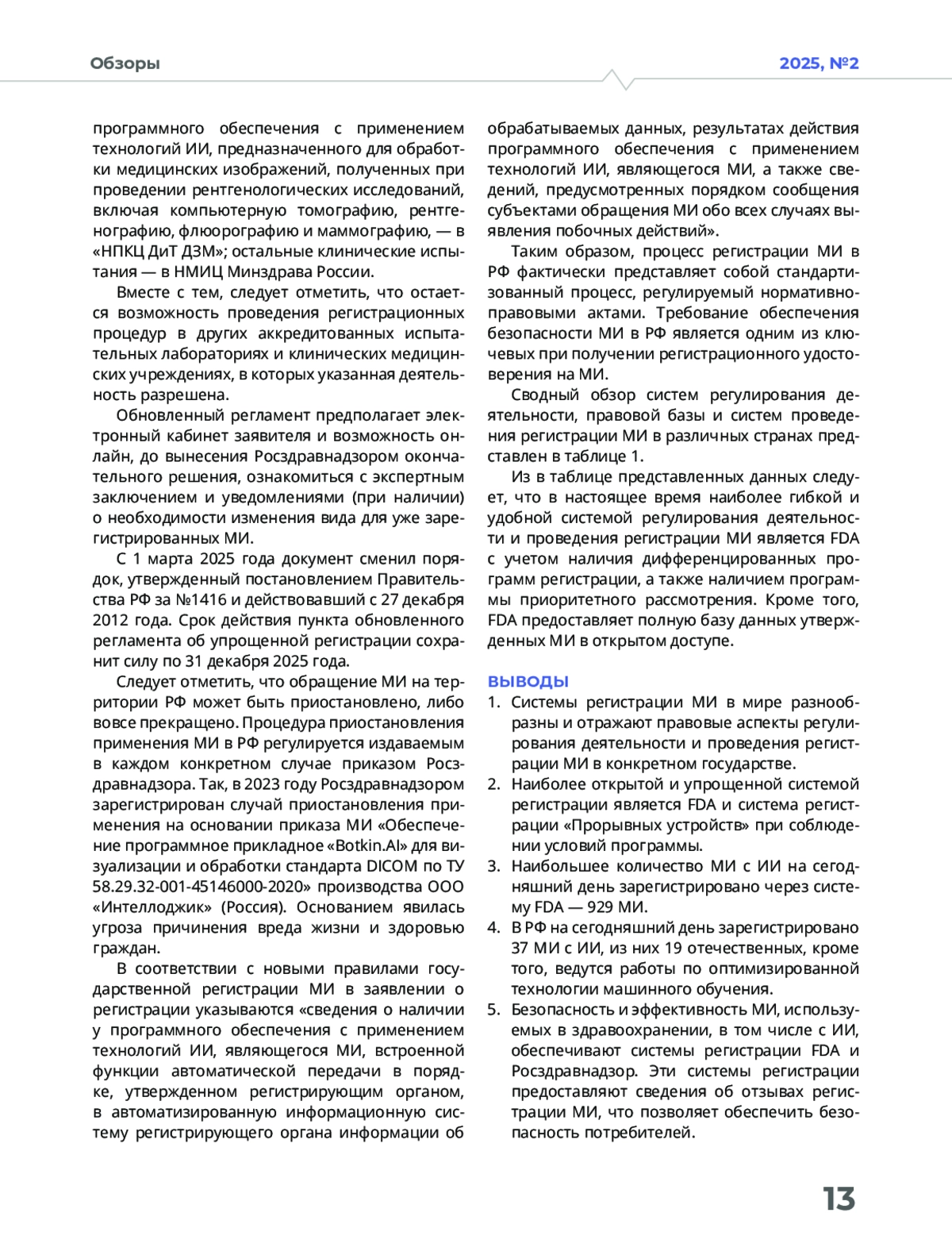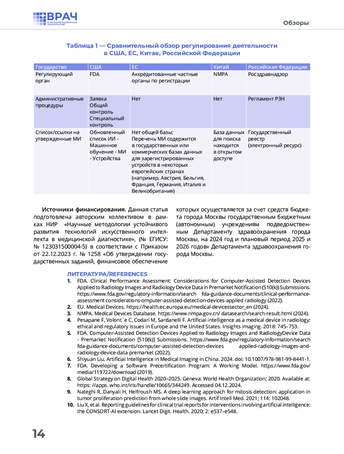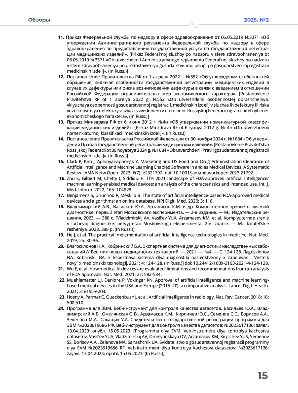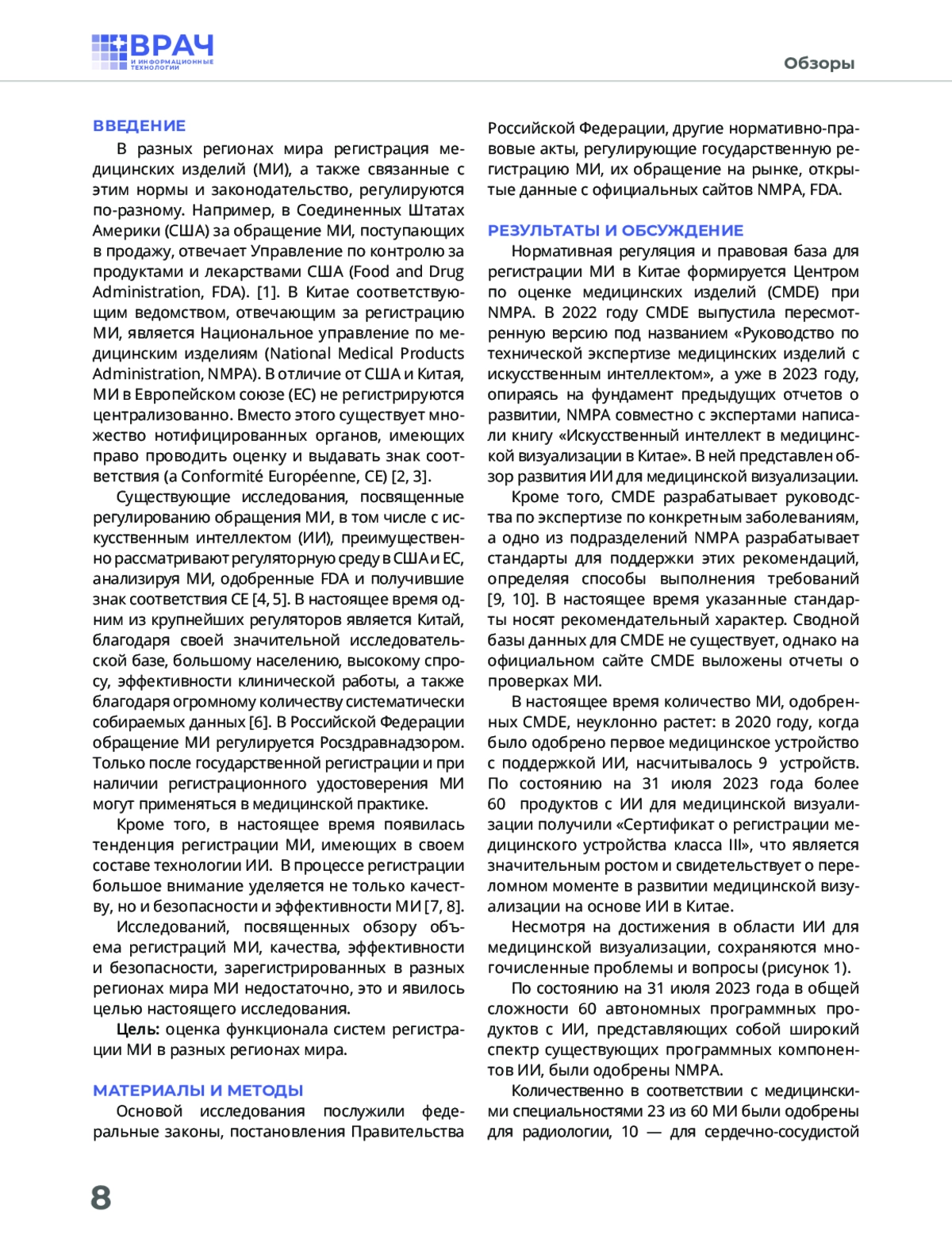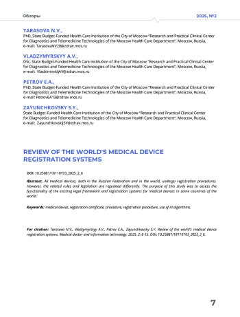 ТАРАСОВА Н. В., ВЛАДЗИМИРСКИЙ А. В., ПЕТРОВ Е. А., ЗАЮНЧКОВСКИЙ С.Ю. ОБЗОР МИРОВЫХ СИСТЕМ РЕГИСТРАЦИИ МЕДИЦИНСКИХ ИЗДЕЛИЙ // ВРАЧ И ИНФОРМАЦИОННЫЕ ТЕХНОЛОГИИ. 2025. № 2