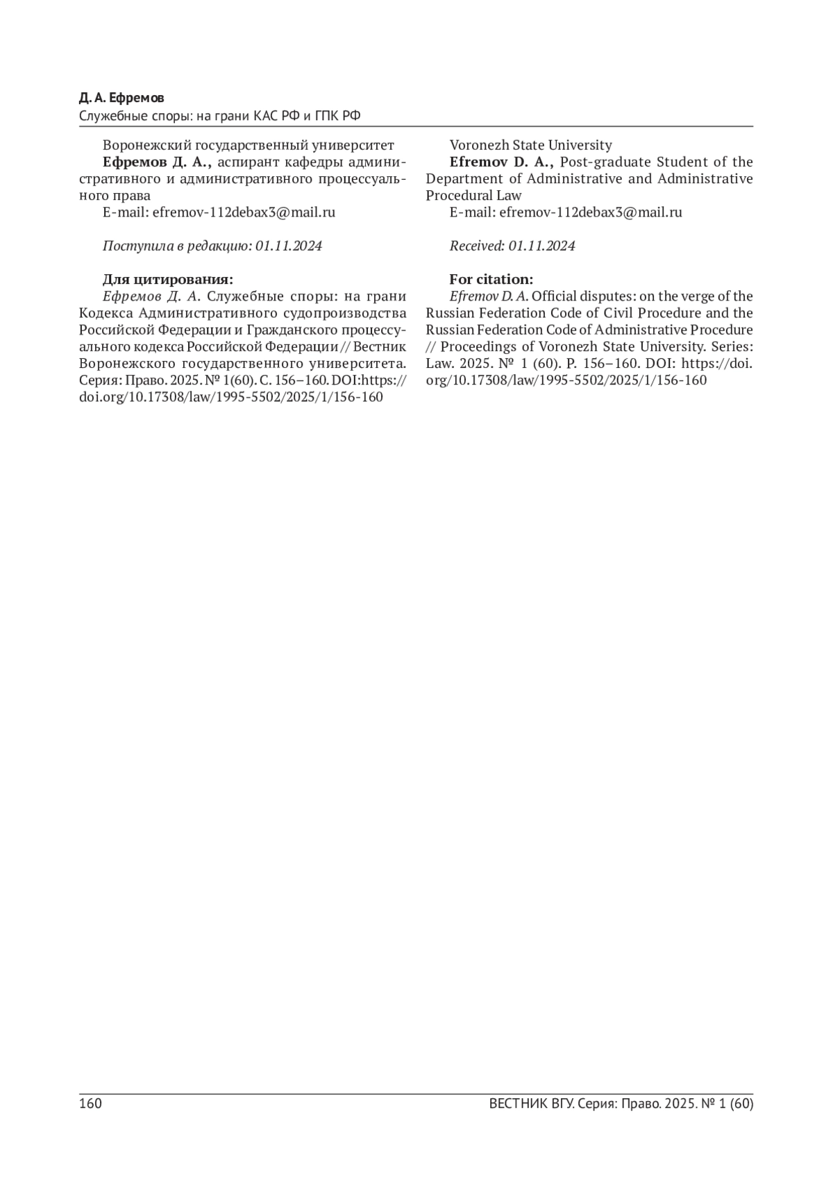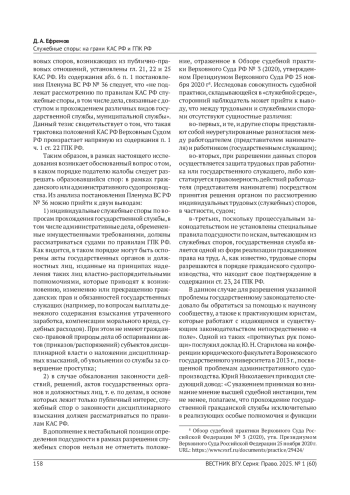1. Гуринович А. Г. Об актуальных изменениях в законодательстве о государственной гражданской службе в части, касающейся рассмотрения индивидуальных служебных споров // Рос. юстиция.2021. № 2. С. 46-48.