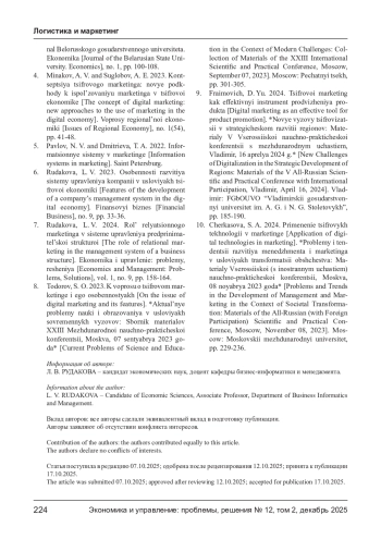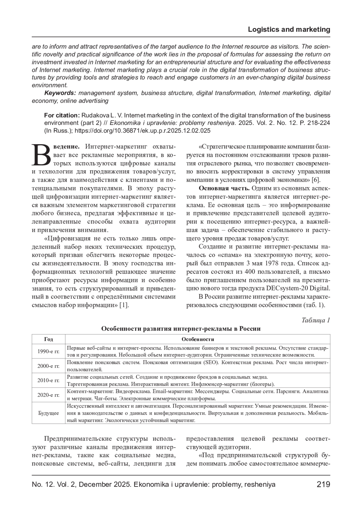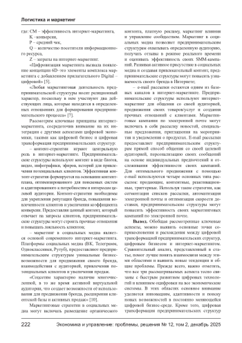 РУДАКОВА Л. В. ИНТЕРНЕТ-МАРКЕТИНГ В КОНТЕКСТЕ ЦИФРОВОЙ ТРАНСФОРМАЦИИ БИЗНЕС-СРЕДЫ (ЧАСТЬ 2) // ЭКОНОМИКА И УПРАВЛЕНИЕ: ПРОБЛЕМЫ, РЕШЕНИЯ. 2025. ТОМ 12 № 2