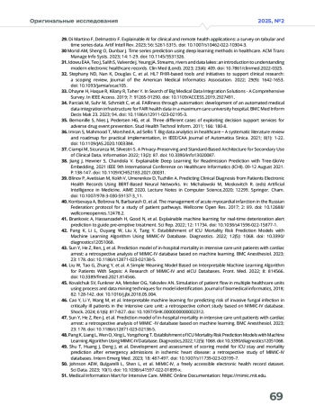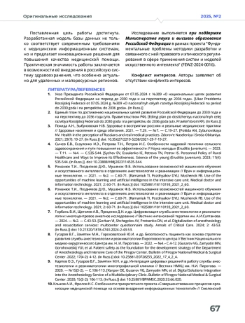 5. Романюк Т.И., Поздняков Д.Ю., Мушенок Ф.Б. Использование возможностей машинного обучения и искусственного интеллекта в отделениях анестезиологии и реанимации // Врач и информационные технологии. - 2021. - № 2. - С. 60-71. doi: 1025881/18110193_2021_2_60.