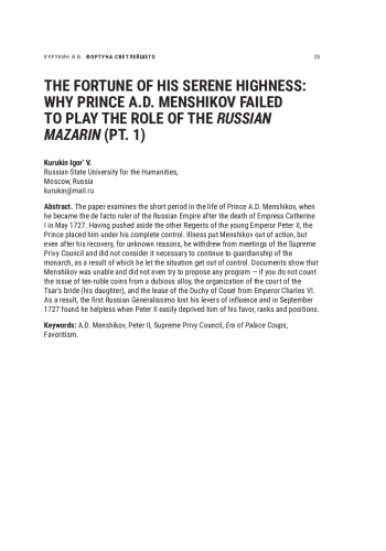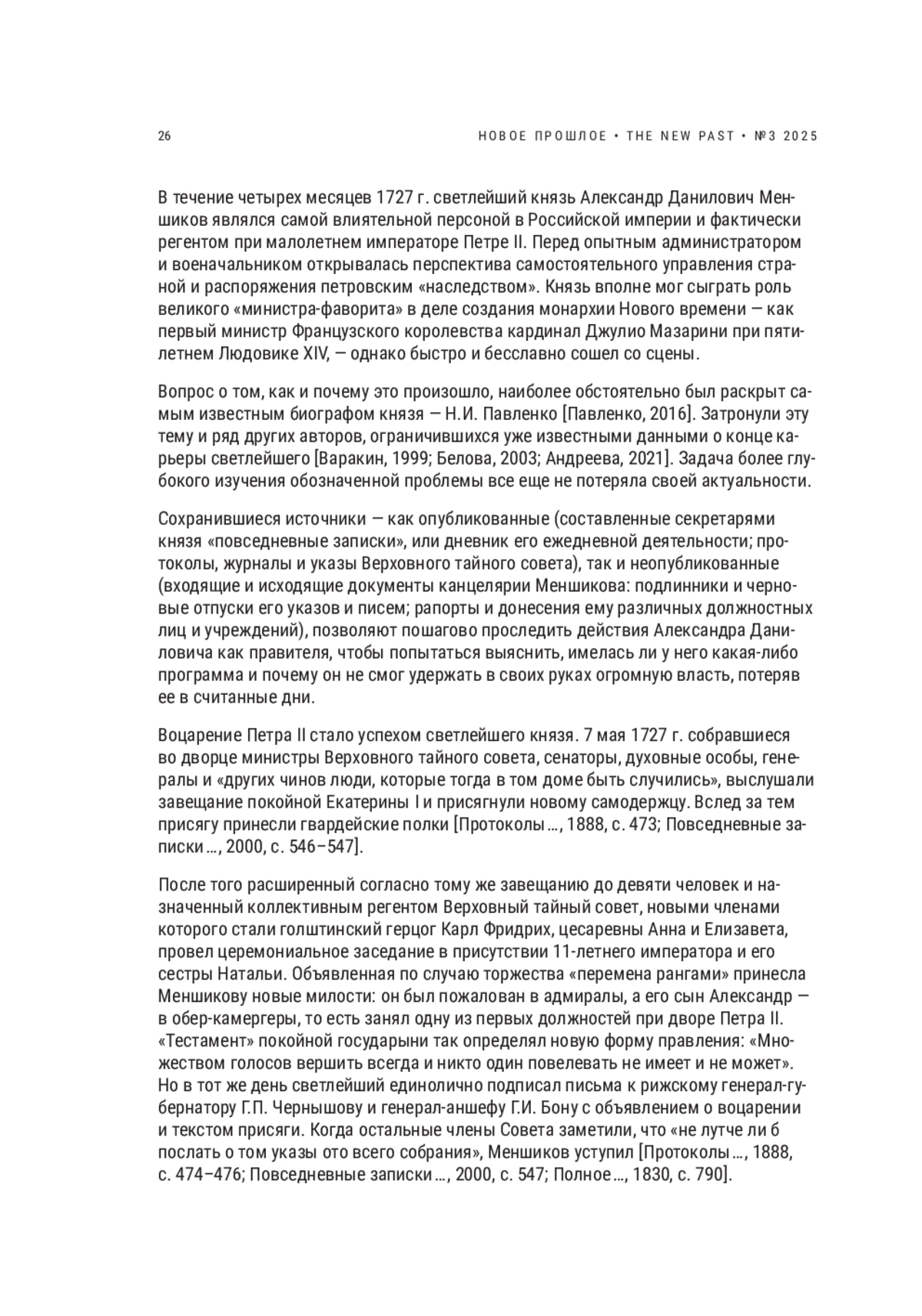 30. Pavlenko N.I. Menshikov: Poluderzhavnyi vlastelin [Menshikov: The Semi-Sovereign Ruler]. Moscow: Molodaya gvardiya, 2016. 400 p. (in Russian).
