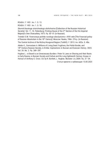 46. Akel’ev E.V. Russkii Misopogon: Petr I, bradobritie i desyat’ millionov «moskovitov» [The Russian Misopogon: Peter I, Beard Shaving, and Ten Million Muscovites]. Moscow: Novoe literaturnoe obozrenie, 2022. 624 p. (in Russian).