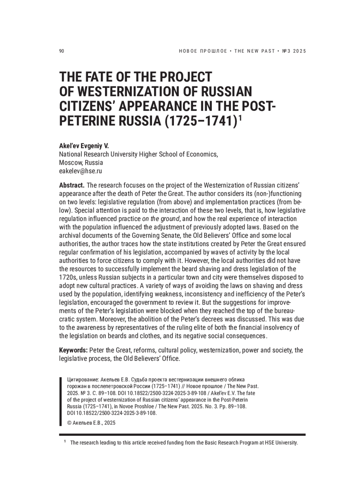 47. Akel’ev E.V., Trefilov E.N. Proekt evropeizatsii vneshnego oblika poddannykh v Rossii pervoi poloviny XVIII v.: zamysel i realizatsiya [The project of the Europeanization of Russian Citizens’ appearance in the First Half of the 18th Century: initial plans and practical realization], in Fenomen reform na zapade i vostoke Evropy v nachale Novogo vremeni (XVI - XVIII vv.). Ed. by M.M. Krom, L.A. Pimenova. St. Petersburg: European University in St. Petersburg Press, 2013. Pp. 153-173 (in Russian).