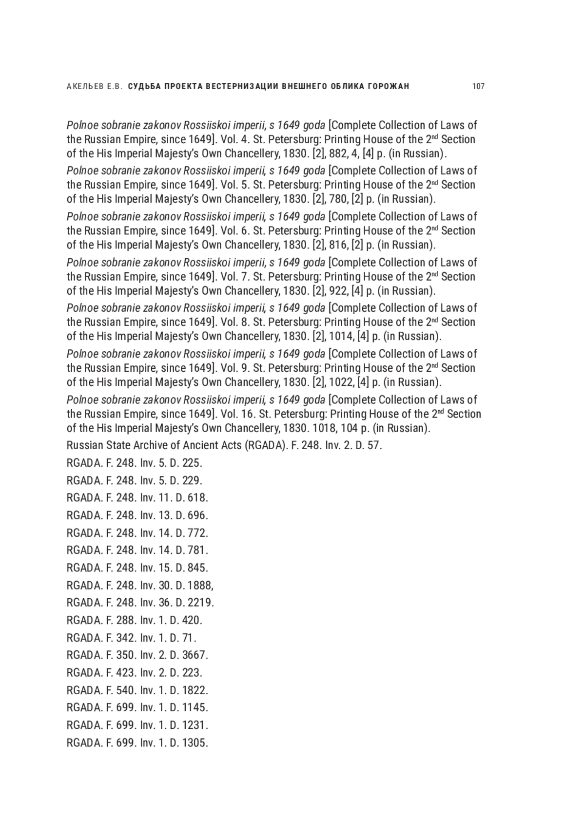 56. Polnoe sobranie zakonov Rossiiskoi imperii, s 1649 goda [Complete Collection of Laws of the Russian Empire, since 1649]. Vol. 7. St. Petersburg: Printing House of the 2nd Section of the His Imperial Majesty’s Own Chancellery, 1830. [2], 922, [4] р. (in Russian).
