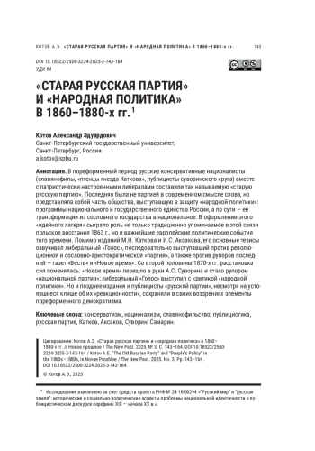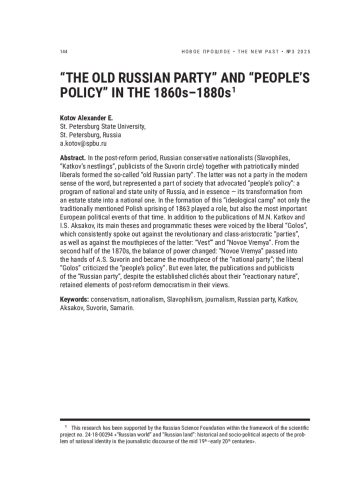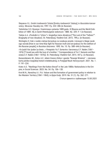 51. Kotov A.E. “Nestlings From the Katkov Brood” in the Late 1880s: Nationalists in the Empire // Social Sciences. 2023. Vol. 54. Pp. 106-120.