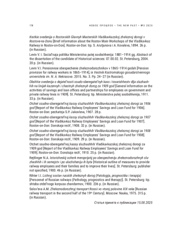 28. Levin V.I. Pensionnoe obespechenie zheleznodorozhnikov v 1865-1914 godah [Pension provision for railway workers in 1865-1914], in Vestnik Kostromskogo gosudarstvennogo universiteta im. N. A. Nekrasova. 2015. No. 3. Pp. 24-27 (in Russian).