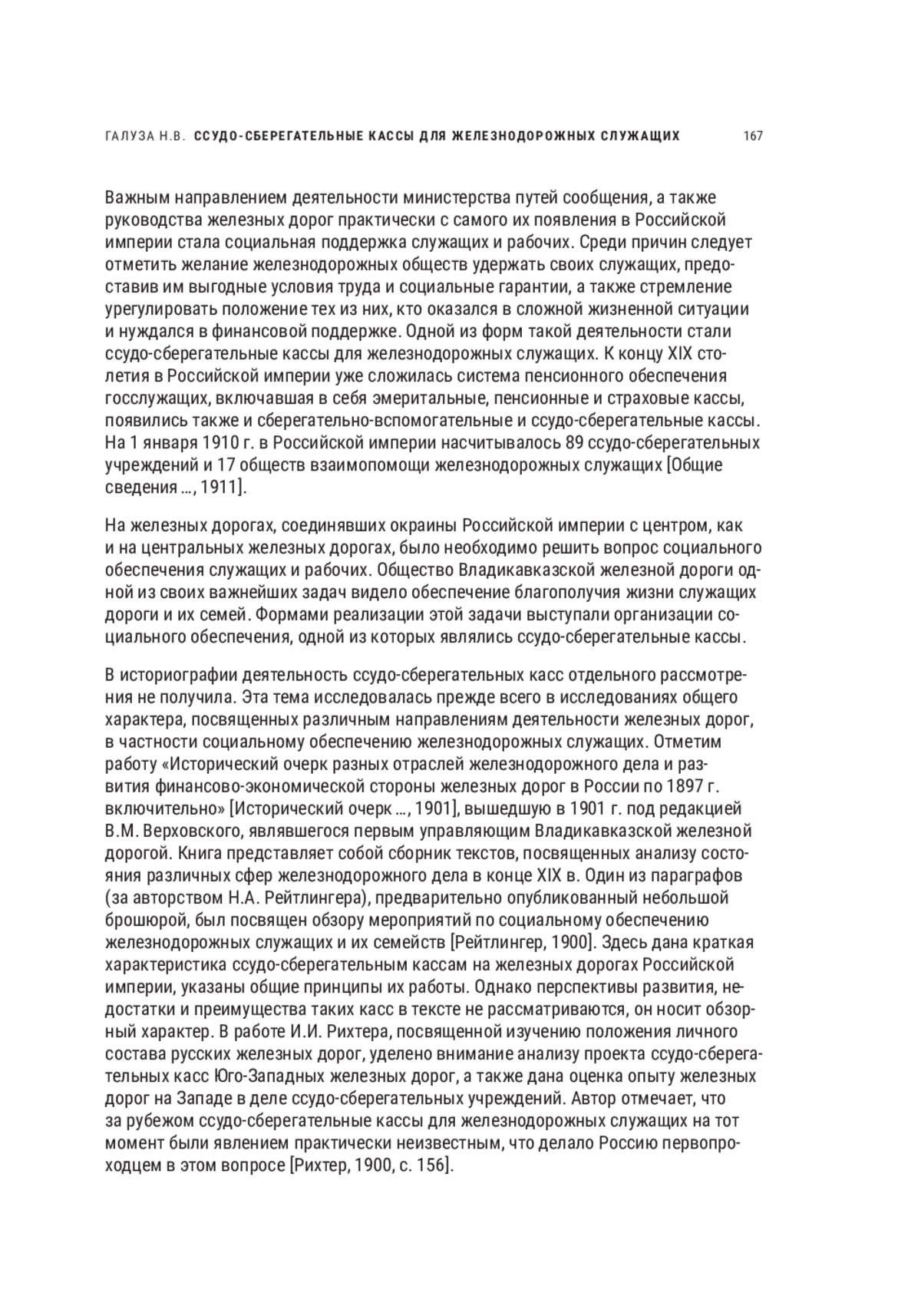 16. Рейтлингер Н.А. Исторический очерк мероприятий по обеспечению железнодорожных служащих и их семейств и по улучшению их быта. СПб.: б.и., 1900. 46 с.