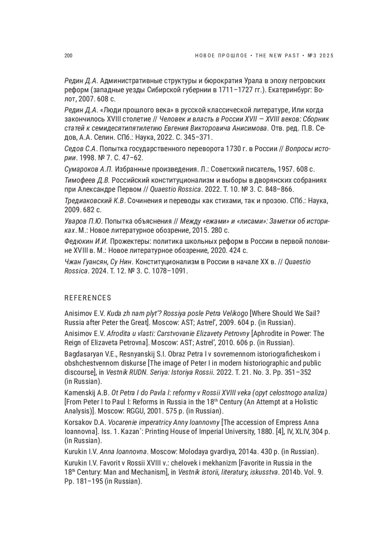 3. Багдасарян В.Э., Реснянский С.И. Образ Петра I в современном историографическом и общественном дискурсе // Вестник РУДН. Сер.: История России. 2022. Т. 21. № 3. С. 351-352.