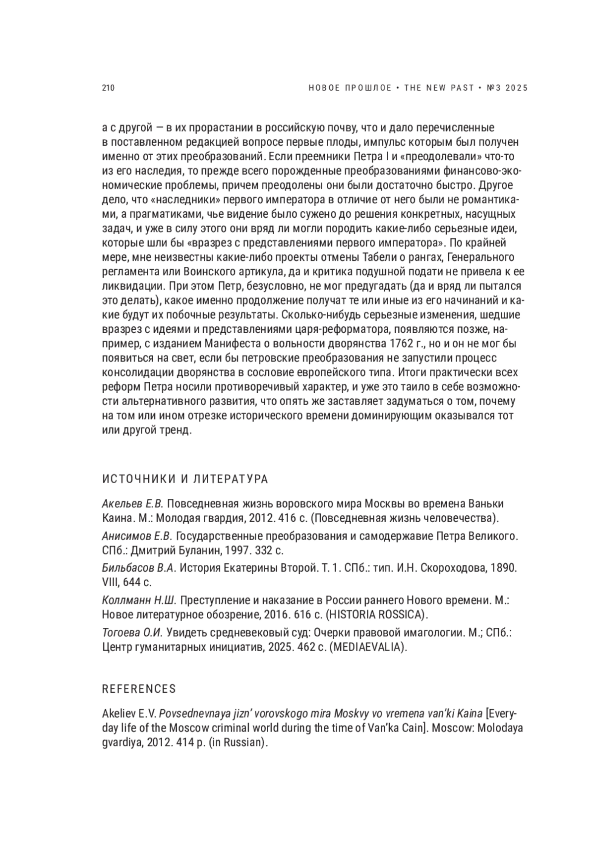 9. Kollmann N.Sh. Prestuplenie i nakazanie v Rossii rannego Novogo vremeni [Crime and Punishment in Early Modern Russia]. Moscow: Novoe literaturnoe obozrenie, 2016. 616 p. (HISTORIA ROSSICA) (in Russian).