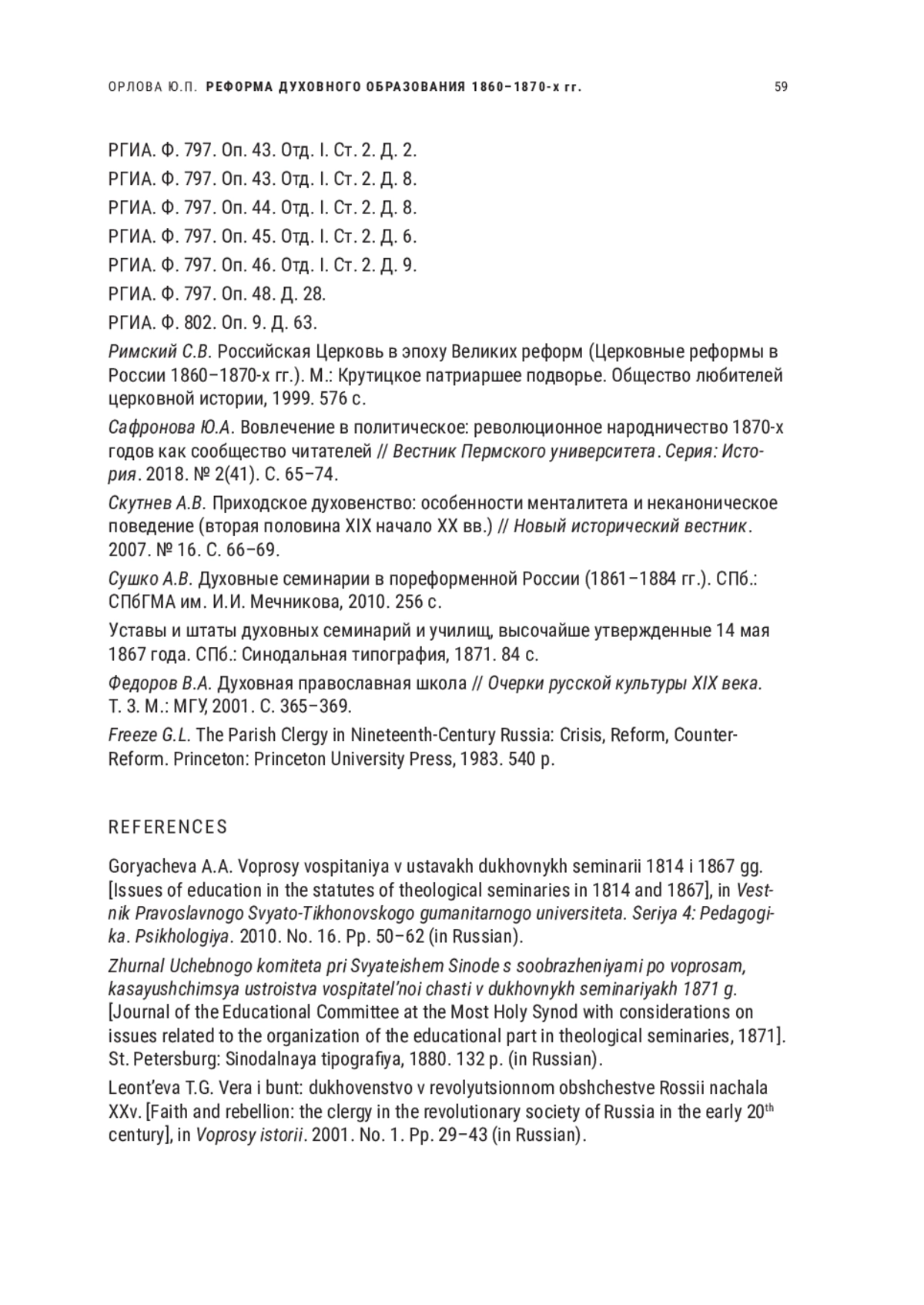25. Freeze G.L. The Parish Clergy in Nineteenth-Century Russia: Crisis, Reform, Counter-Reform. Princeton: University Press, 1983. 540 p.
