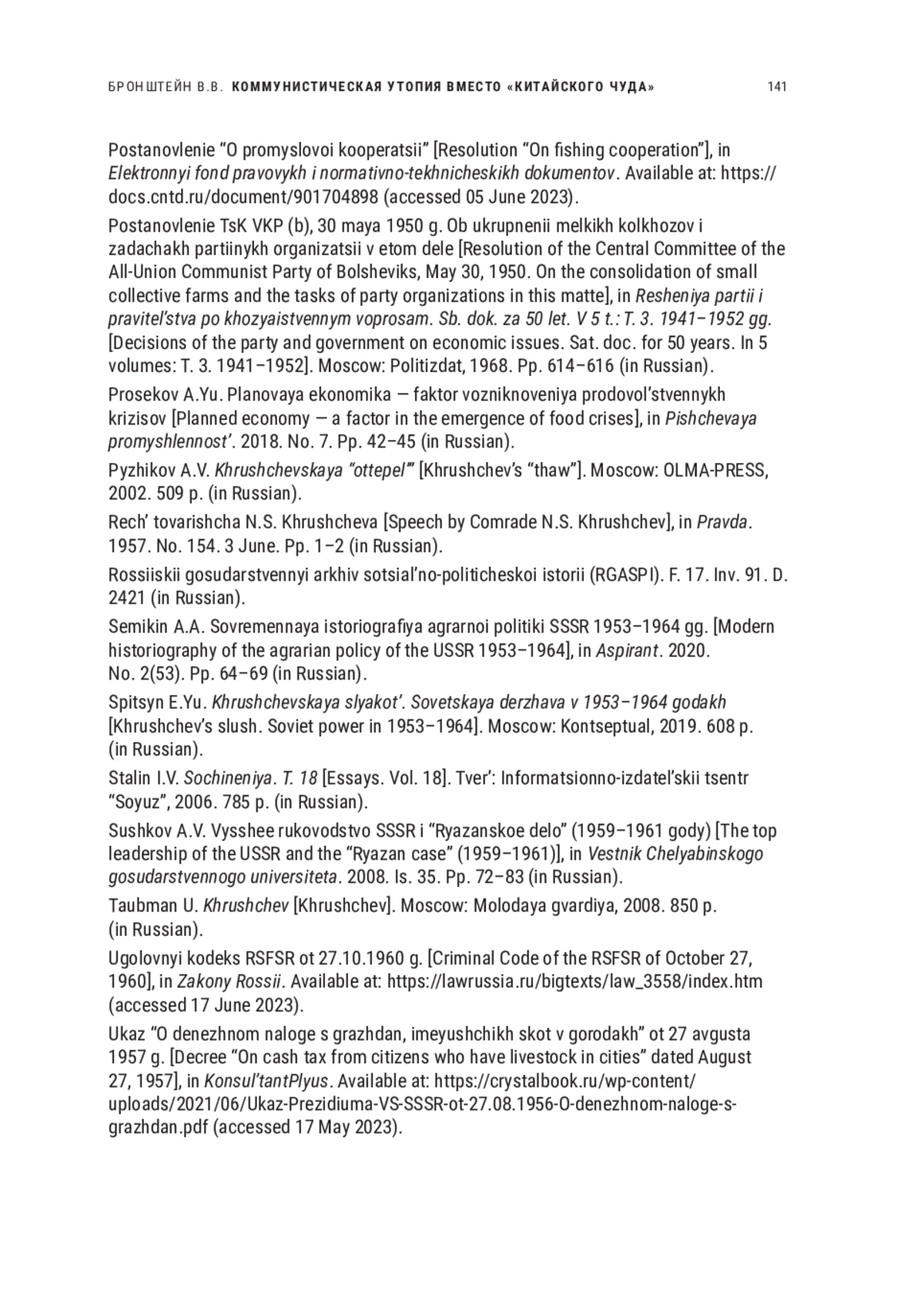 50. Эпштейн Д.Б. Разорила ли колхозы продажа им тракторов в 1958 г. // Вопросы экономики и права. 2015. № 89. С. 77-83. EDN: VVBYTN