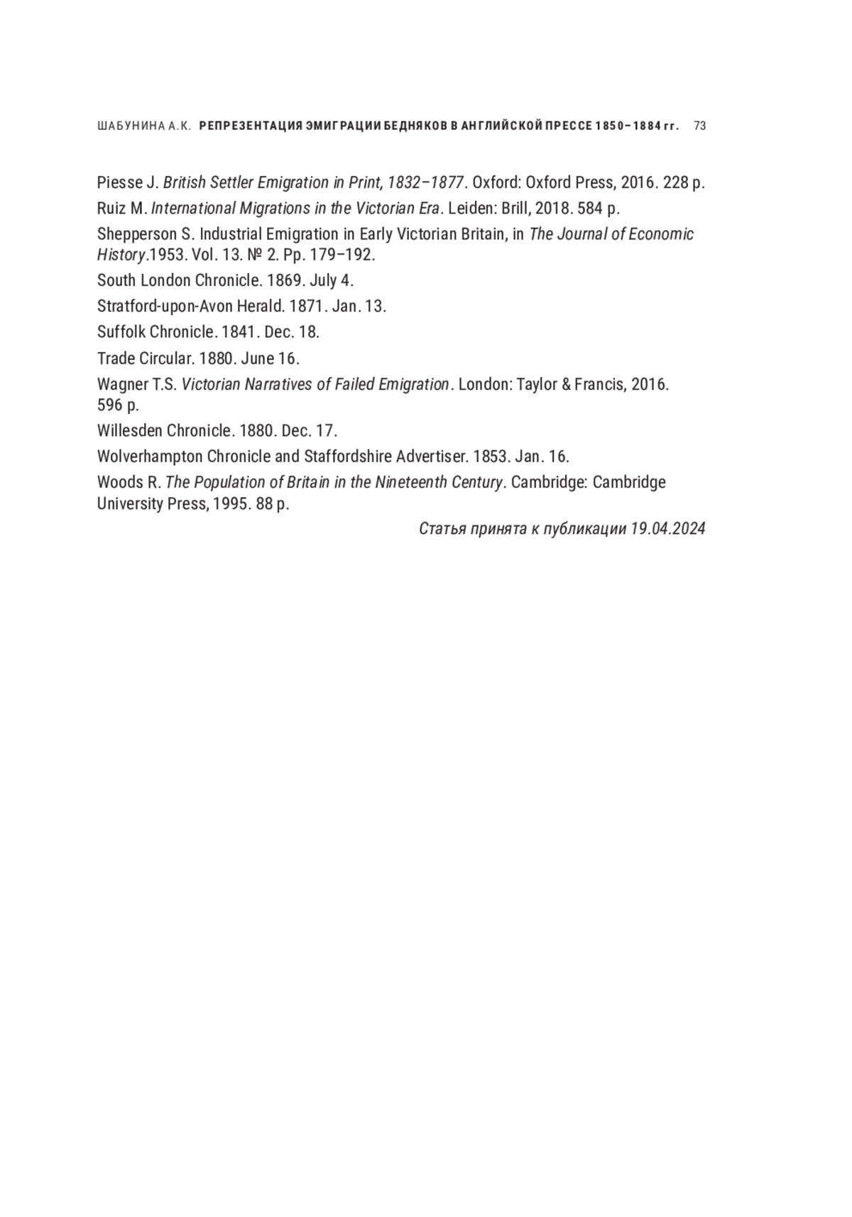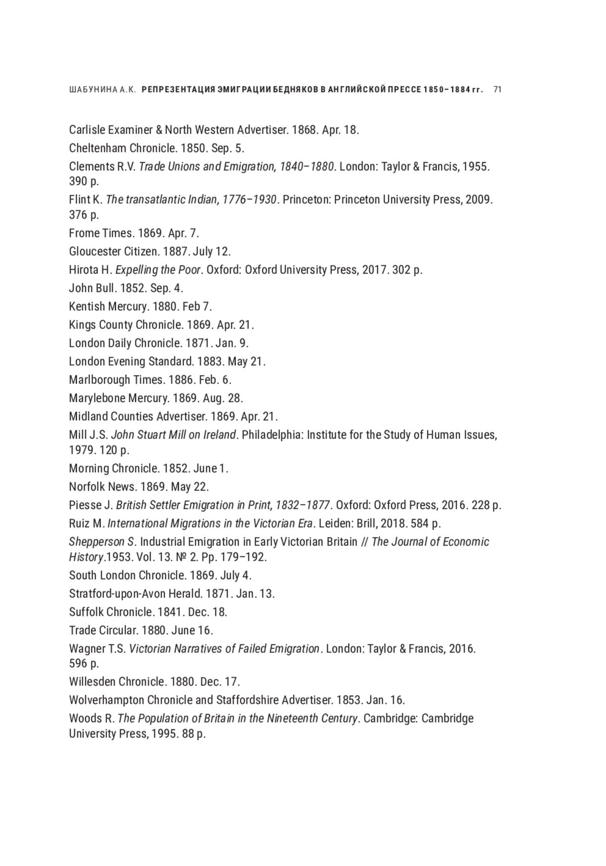 31. Shepperson S. Industrial Emigration in Early Victorian Britain // The Journal of Economic History.1953. Vol. 13. № 2. Pp. 179-192.
