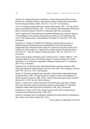 12. Левин В.И. Социальная политика Министерства путей сообщения: 1881-1914 гг.: Автореф. дис. … канд. ист. наук: 07.00.02. СПб., 2004. 20 с. EDN: ZMTYQD