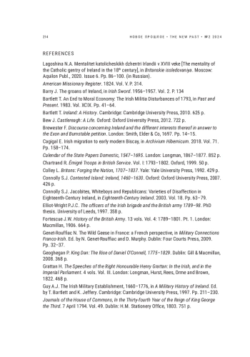4. Bartlett T. An End to Moral Economy: The Irish Militia Disturbances of 1793 // Past and Present. 1983. Vol. XCIX. Pp. 41-64. EDN: IVOTMZ