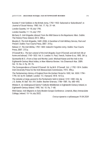 21. Karsten P. Irish Soldiers in the British Army, 1792-1922: Suborned or Subordinate? // Journal of Social History. 1983. Vol. 17. Pp. 31-64.