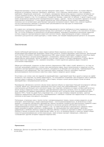 10. Канайлова А.О. Способы и приемы работы городских новостных медиа с текстами на социально значимые темы // МедиаАльманах. 2024. № 4 (123). С. 84-94. DOI: 10.30547/mediaalmanah.4.2024.8494
