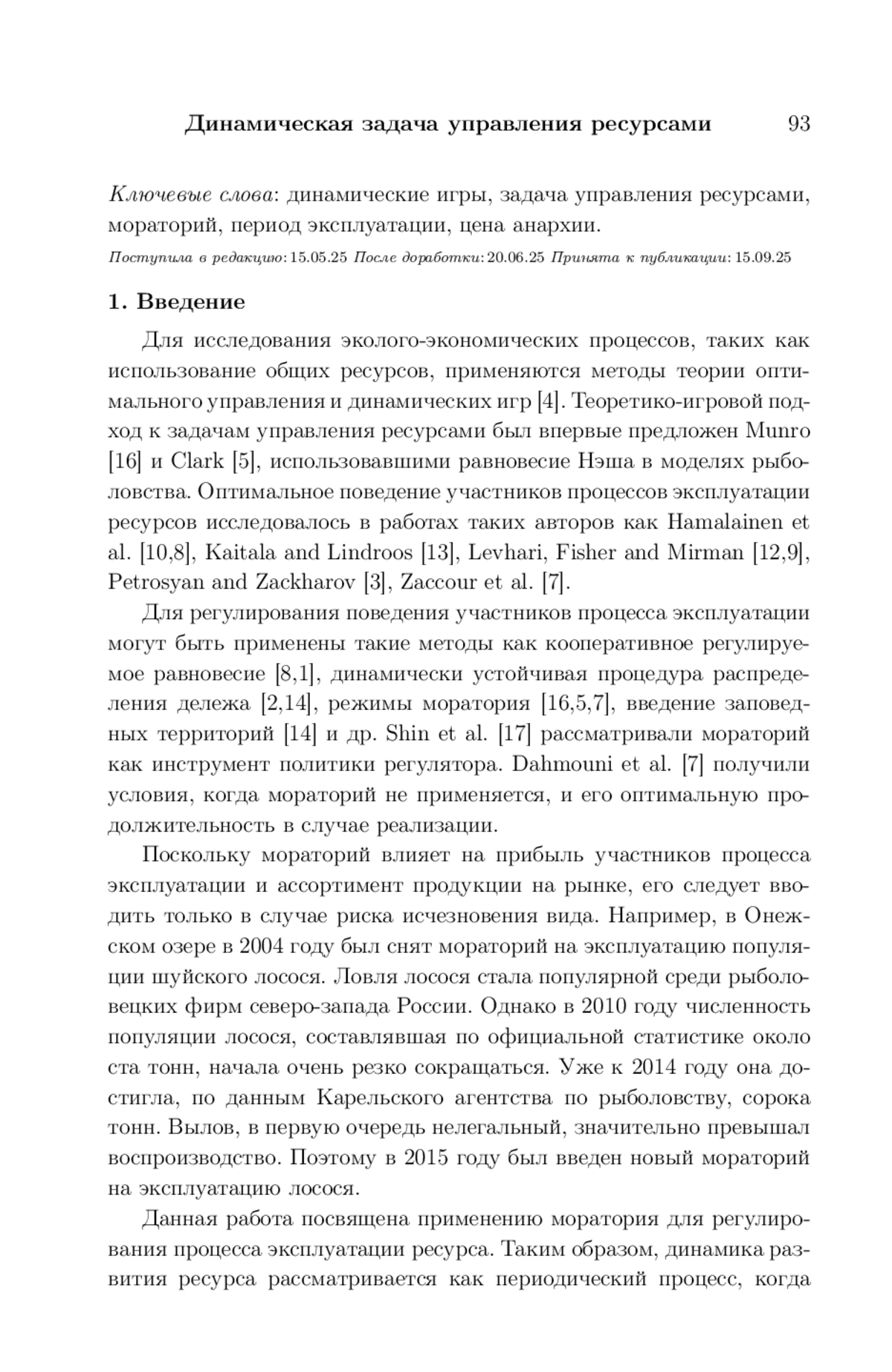 16. Munro G.R. The optimal management of transboundary renewable resources // Can. J. of Econ. 1979. Vol. 12, iss. 8. P. 355-376.