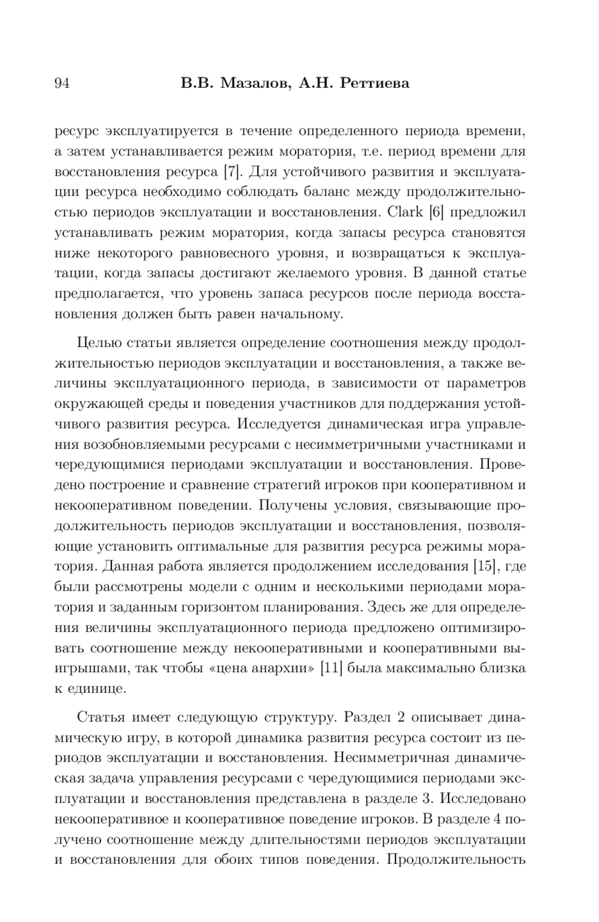 15. Mazalov V.V., Rettieva A.N. Exploitation and recovery periods in dynamic resource management problem // Lecture Notes in Computer Science. 2023. Vol. 13930. P. 288-299.