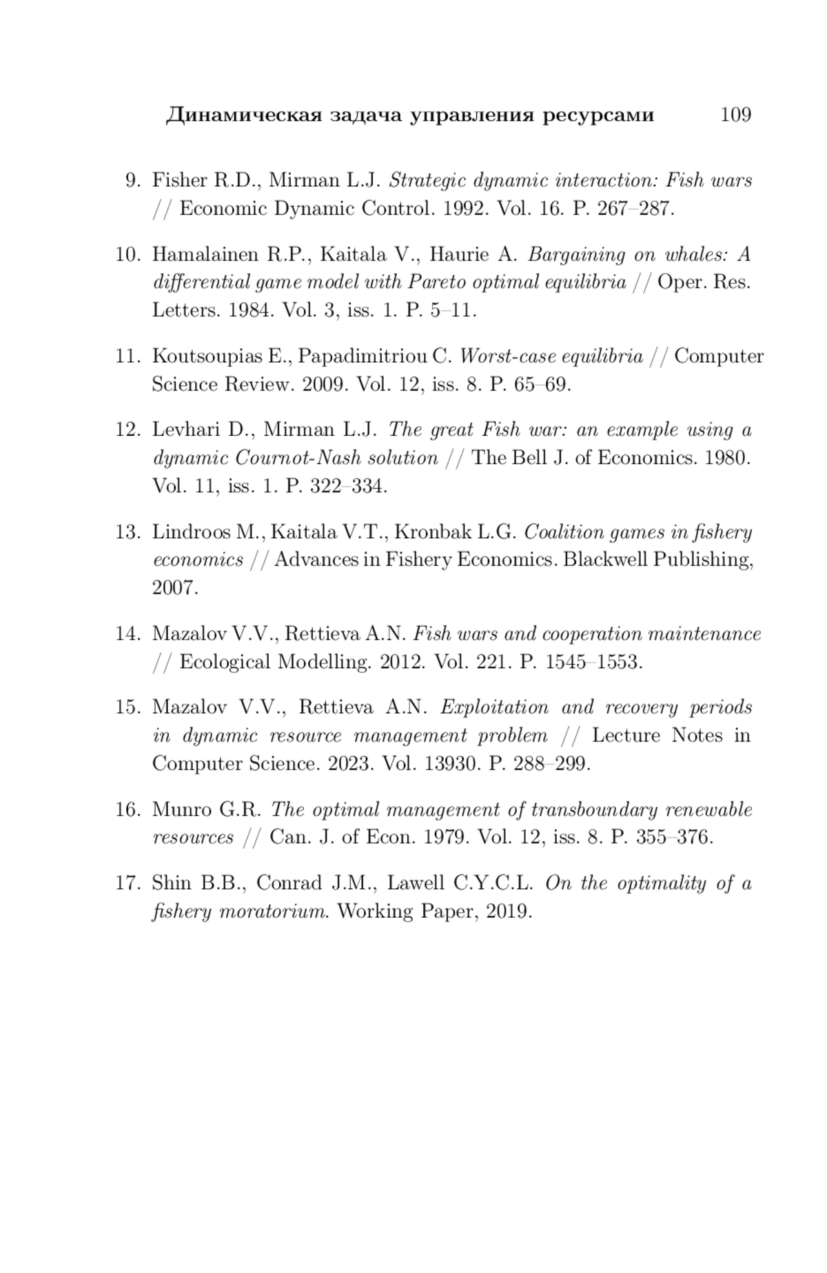 13. Lindroos M., Kaitala V.T., Kronbak L.G. Coalition games in fishery economics // Advances in Fishery Economics. Blackwell Publishing, 2007.