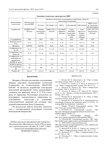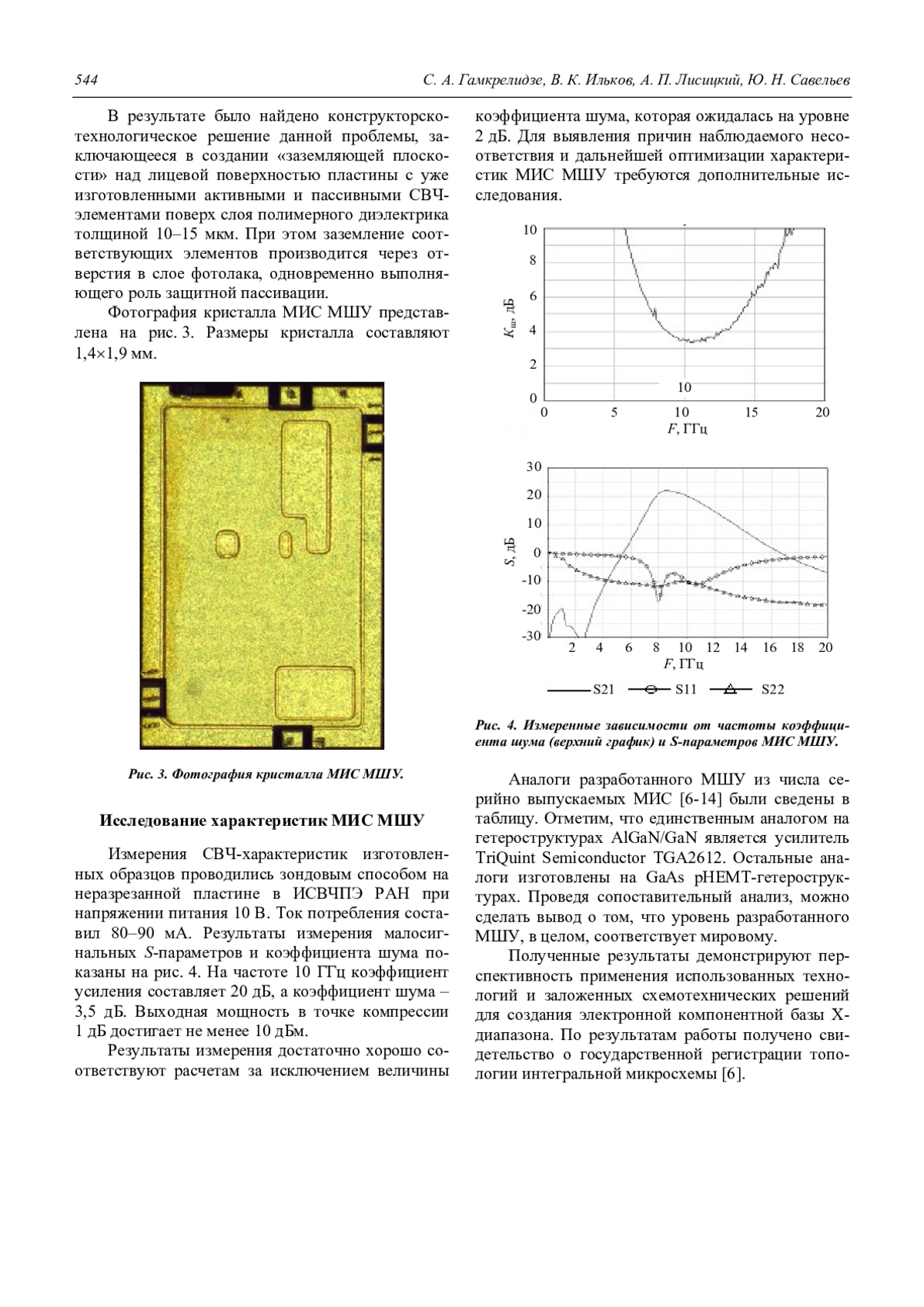 Гамкрелидзе С. А., Ильков В. К., Лисицкий А. П., Савельев Ю. Н. Монолитная интегральная схема малошумящего усилителя Х-диапазона 542
