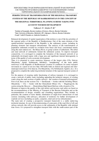 Проведен анализ и выделены факторы, влияющие на территориальные различия в развитии туристско- рекреационного комплекса Республики Башкортостан. Проведенное исследование, использованное в создании новой редакции Схемы территориального планирования Республики Башкортостан, показывает, что развитие туризма и рекреации на перспективу ограничено помимо прочих факторов уровнем развития региональной транспортной системы. Показаны основные перспективные направления развития транспорта, а также туризма. Недостаточно развитые внутрирегиональные транспортные связи, слабое развитие транспортных связей между соседними муниципальными районами ограничивают развития туризма в регионе.
