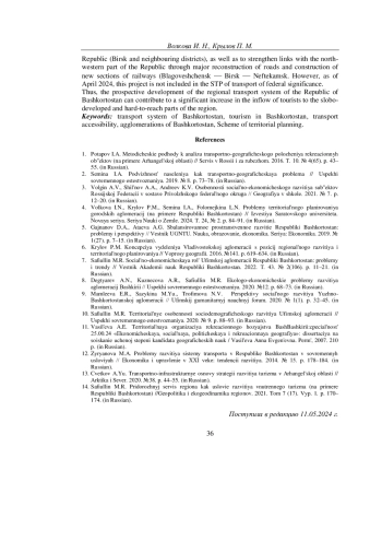 4. Волкова И.Н., Крылов П.М., Семина И.А., Фоломейкина Л.Н. Проблемы территориального планирования городских агломераций (на примере Республики Башкортостан) // Известия Саратовского университета. Новая серия. Серия Науки о Земле. 2024. Т. 24, № 2. С. 84-91. EDN: YJBMEU