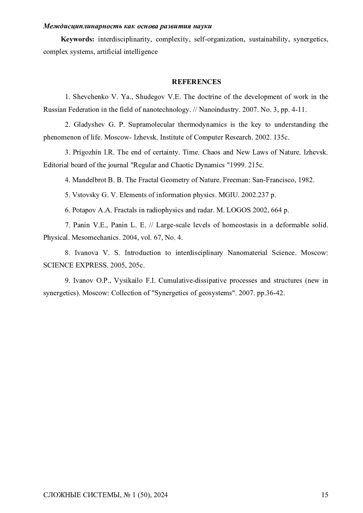 Дано обоснование пути развития научного познания на основе междисциплинарных исследований. Развитие теории самоорганизации, синергетики, теории фракталов, теории сложных систем дает общие закономерности в естественных и социальных науках. Показана общность и различие этих направлений и их перспективы.