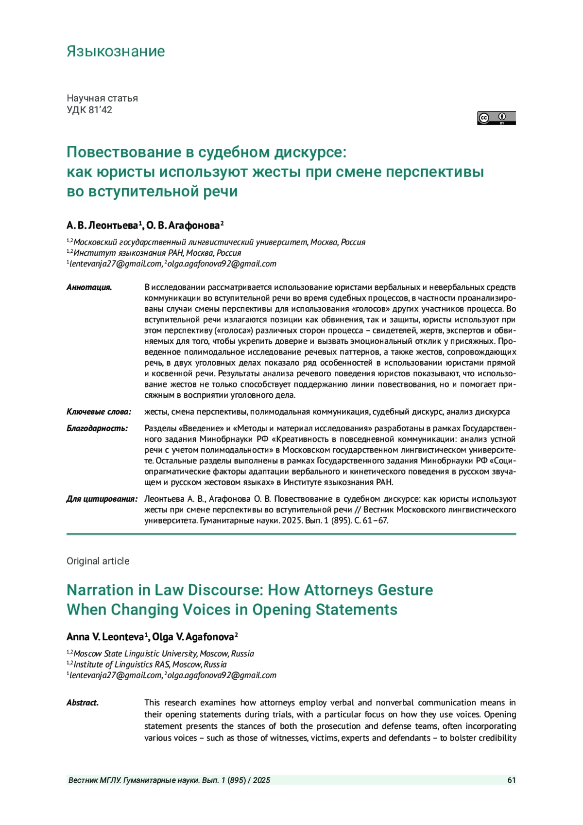 3. Chaemsaithong K. Use of voices in legal opening statements // Social Semiotics. 2018. Vol. 28, № 1. P. 90-107.