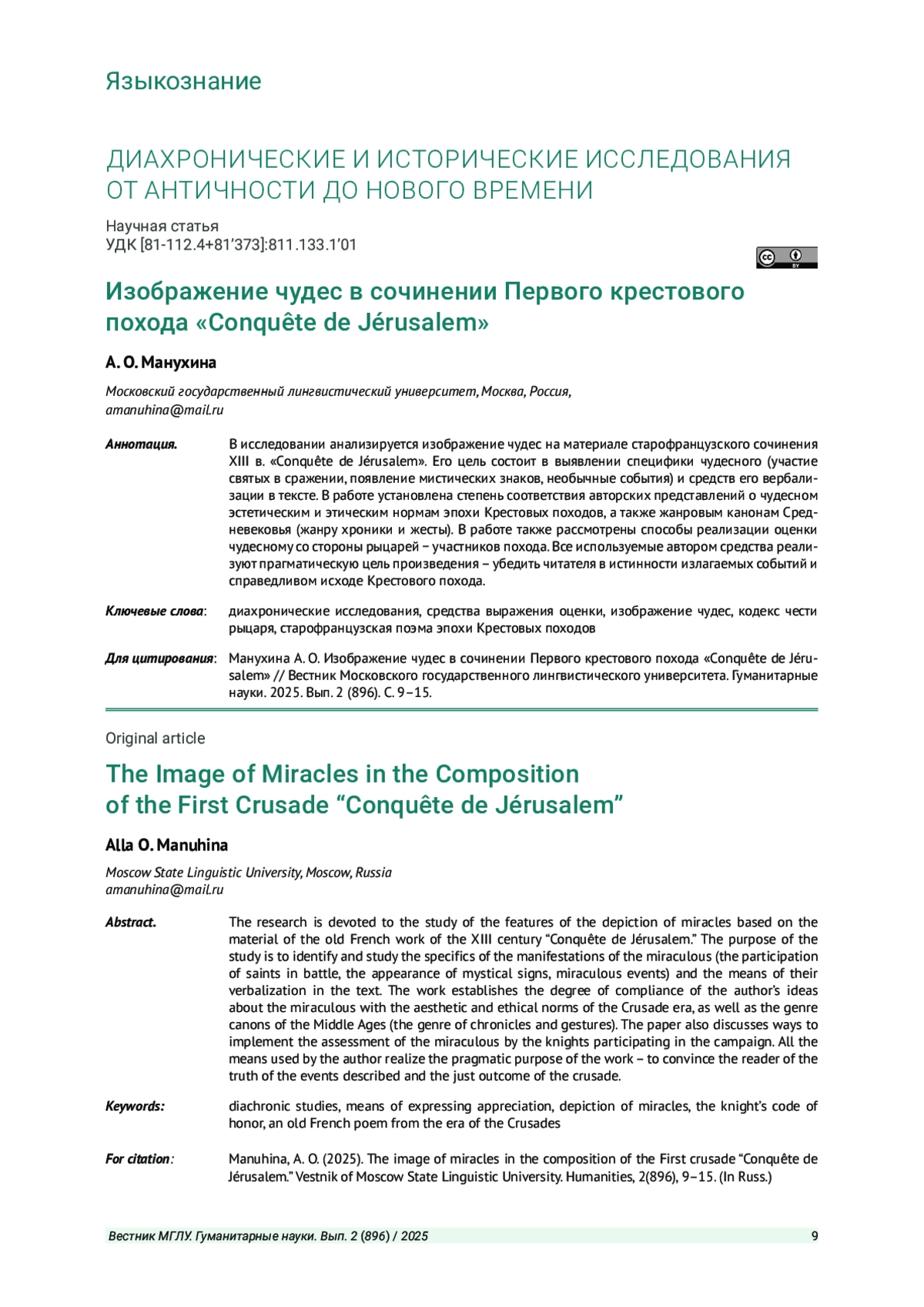 6. Минин С. А. Первый крестовый поход в средневековой культуре: договор Бога и человека в нарративе хронистов: дис. … канд. филол. наук. М., 2009. EDN: QEKNPV