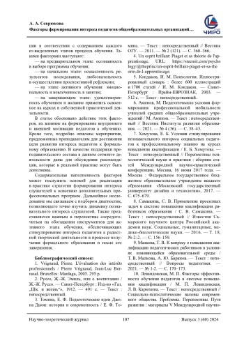 9. Малкова, Т. В. К вопросу о повышении квалификации педагогических работников в условиях изменяющейся образовательной среды / Т. В. Малкова, А. Ю. Баранов. - Текст: непосредственный // Вопросы педагогики. - 2021. - № 1-2. - С. 170-173. EDN: EQTUXN