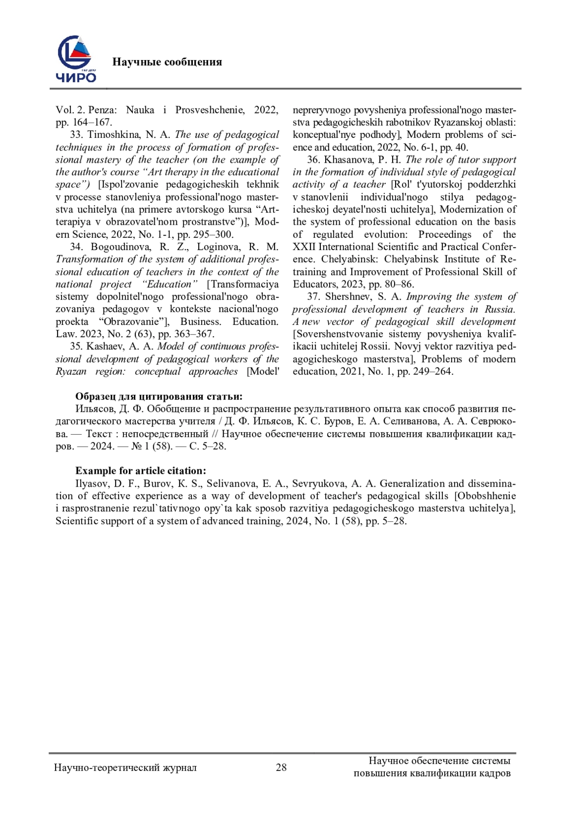 34. Богоудинова, Р. З. Трансформация системы дополнительного профессионального образования педагогов в контексте национального проекта “Образование” / Р. З. Богоудинова, Р. М. Логинова. - Текст: непосредственный // Бизнес. Образование. Право. - 2023. - № 2 (63). - С. 363-367. EDN: RGAXDS