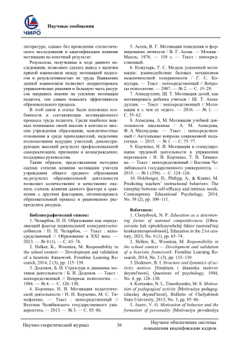8. Ахмедова, А. М. Мотивация учебной деятельности школьника / А. М. Ахмедова, Ф. А. Махмудова. - Текст: непосредственный // Актуальные вопросы современной педагогики. - 2015. - № 1. - С. 75-77.