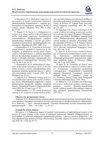 4. Масюкова, Н. Г. Методическая компетентность в структуре профессиональной компетентности учителя / Н. Г. Масюкова. - Текст: непосредственный // Мир науки, культуры, образования. - 2015. - № 3 (52). - С. 67-68. EDN: UAVWDD