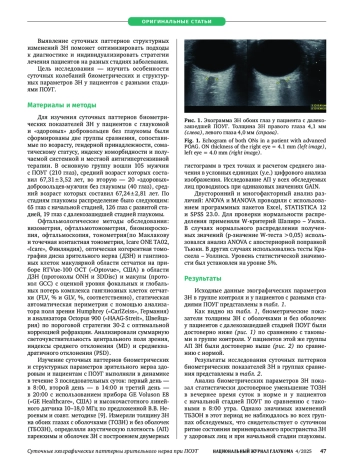 Статья: Особенности суточных паттернов биометрических и структурных параметров зрительного нерва у пациентов с первичной открытоугольной глаукомой (2025)