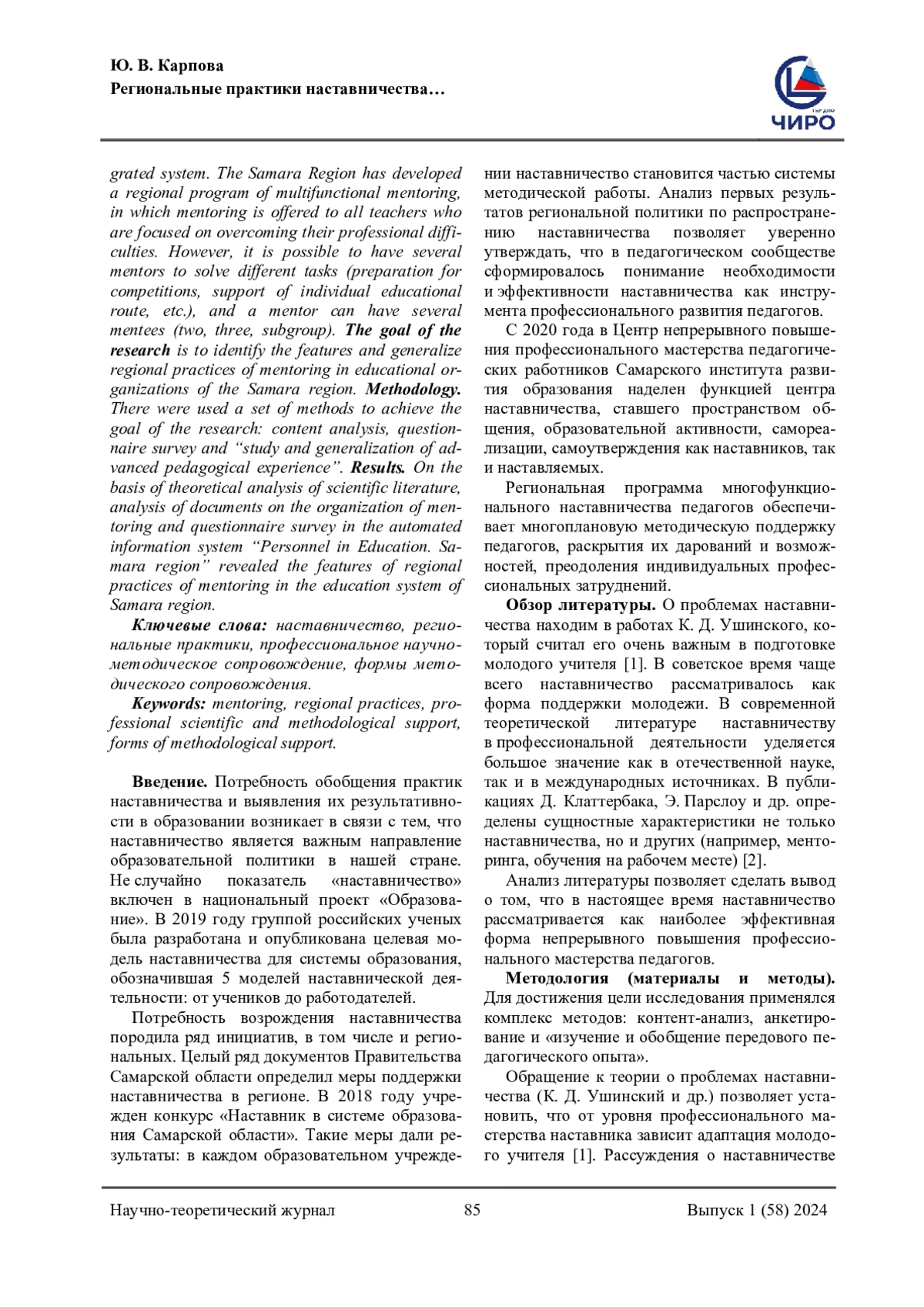 5. Блинов, В. И. Наставничество в образовании: нужен хорошо заточенный инструмент / В. И. Блинов, Е. Ю. Есенина, И. С. Сергеев. - Текст: непосредственный // Профессиональное образование и рынок труда. - 2019. - № 3. - С. 4-18. EDN: XDEBKV