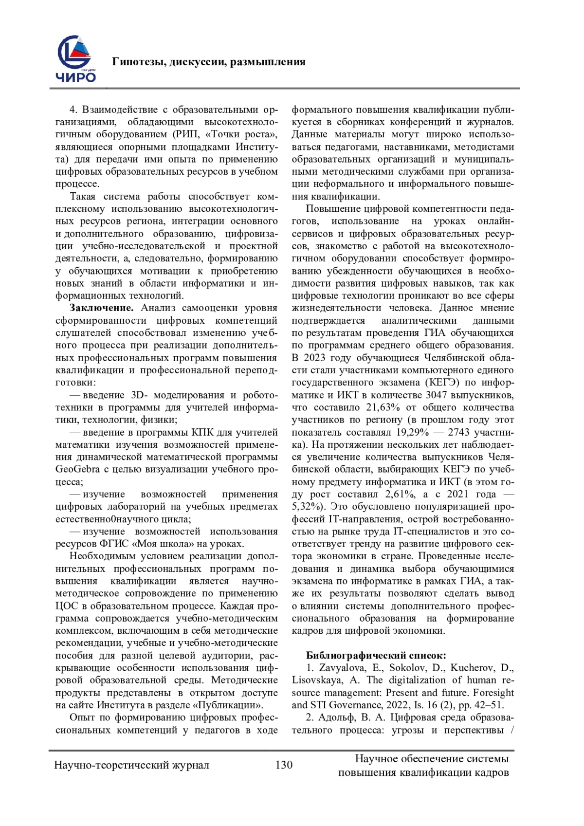1. Zavyalova, E., Sokolov, D., Kucherov, D., Lisovskaya, A. The digitalization of human resource management: Present and future. Foresight and STI Governance, 2022, Is. 16 (2), рр. 42-51. EDN: USSHZZ