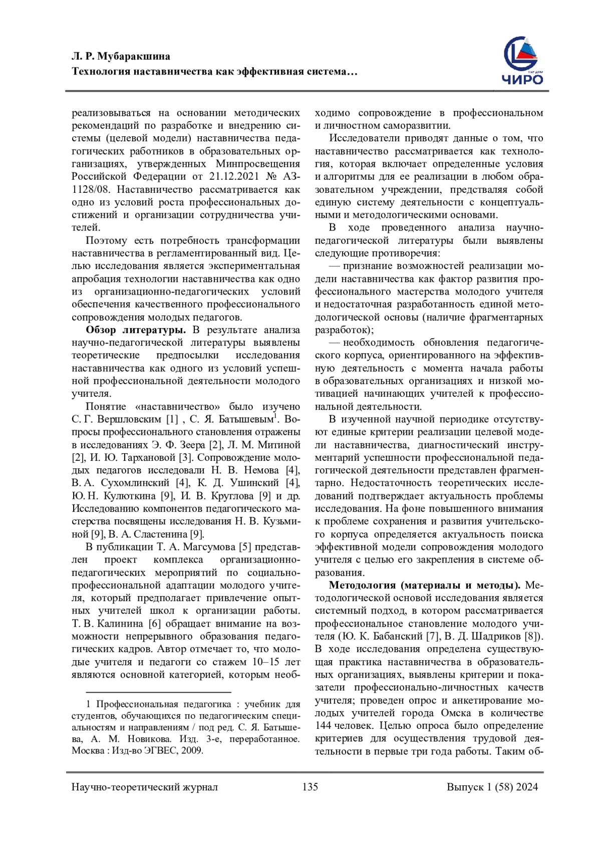 5. Магсумов, Т. А. Проектирование адаптации молодых педагогов общеобразовательной школы / Т. А. Магсумов, О. В. Ищенко, С. Д. Зливко и др. - Текст: непосредственный // Наука Красноярья. - 2022. - № 1. - С. 68-83. EDN: PTYNZU