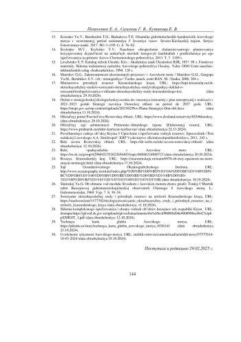 15. Левченко С. П. Каталог рiчок України. Киiв.: Академiя наук Украiнскоi РСР, 1957. 98 с. Фондовые материалы. Схема инженерной защиты Азовского побережья Украины. Ялта: ООО Центр научно-технических услуг “Инжзащита”, 1994. 120 с.