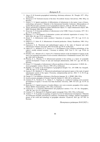 26. Федоров В. Н. К вопросу о типологии регионов по уровню развития инфраструктуры // Материалы XI Всероссийской научно-практической конференции “Трешниковские чтения”. Современная географическая картина мира и технологии географического образования. Ульяновск, 2023. С. 187-189. EDN: RHYZRD