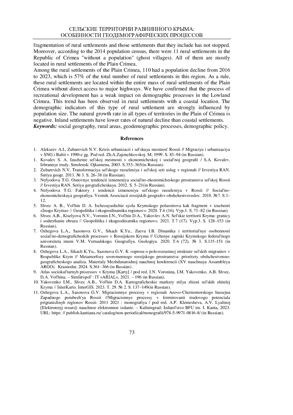 8. Ожегова Л.А., Сазонова Г.В., Сикач К.Ю., Зуева И.Б. Динамика и территориальные особенности социально-демографических процессов в Российском Крыму // Ученые записки Крымского федерального университета имени В.М.Вернадского. География. Геология. 2020. Т.6 (72). № 3. С. 135-151. EDN: WZPPQR