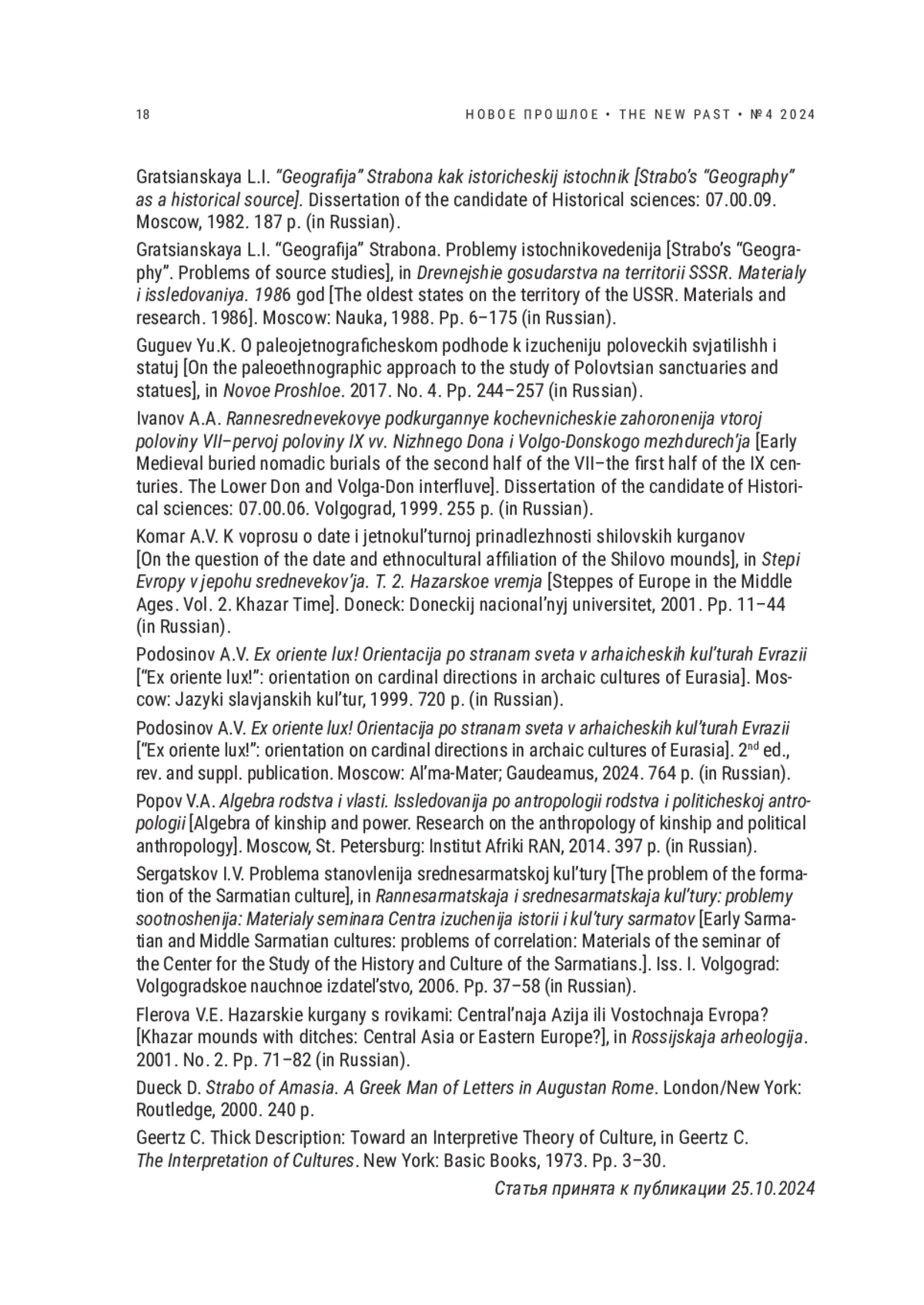 4. Грацианская Л.И. “География” Страбона. Проблемы источниковедения // Древнейшие государства на территории СССР. Материалы и исследования. 1986 год. М.: Наука, 1988. С. 6-175. EDN: PVEHWF