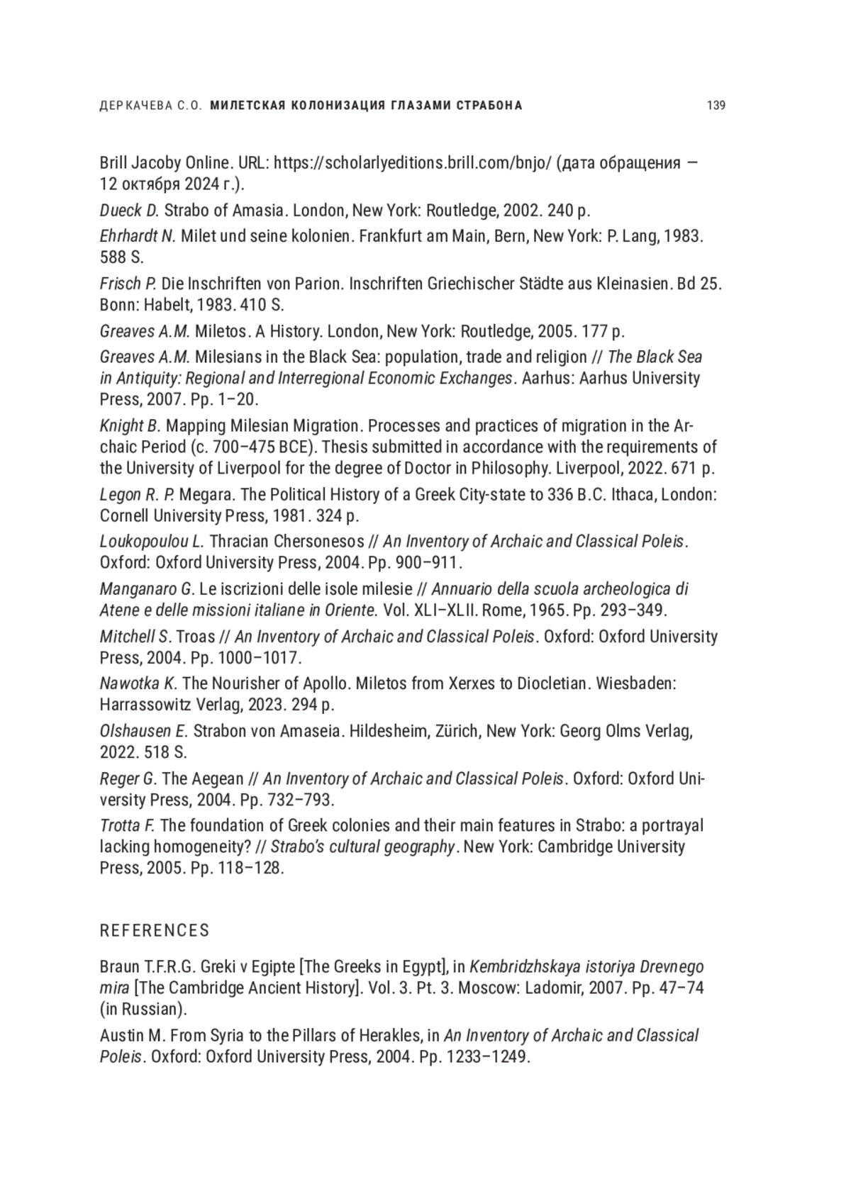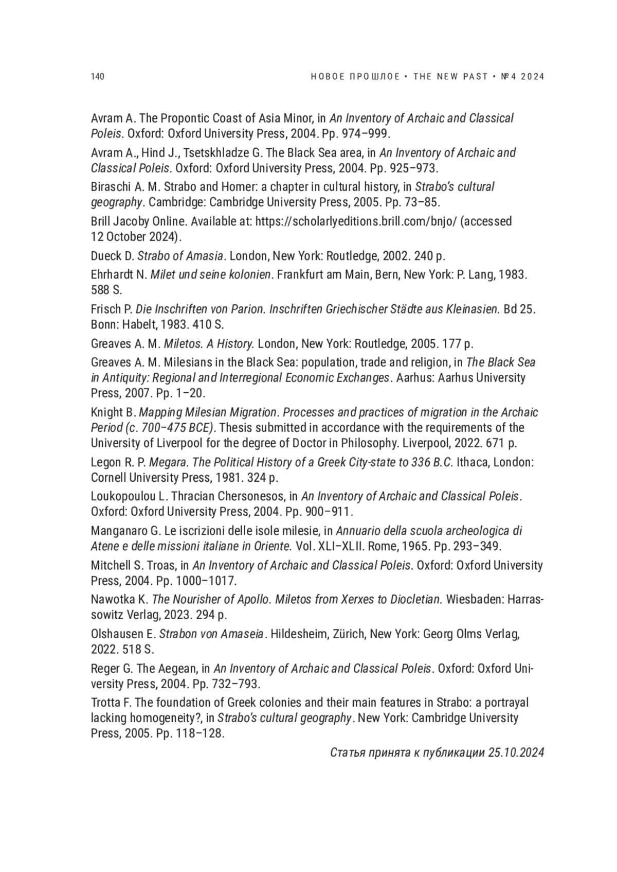 11. Greaves A.M. Milesians in the Black Sea: population, trade and religion // The Black Sea in Antiquity: Regional and Interregional Economic Exchanges. Aarhus: Aarhus University Press, 2007. Pp. 1-20.