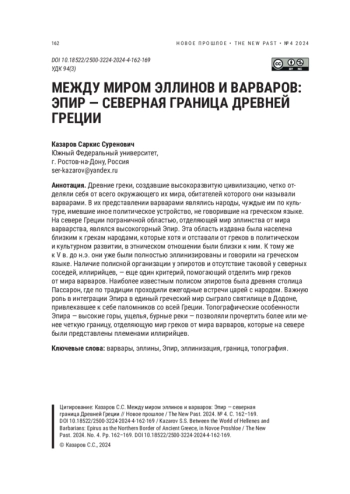 Выбор темы статьи обусловлен отсутствием комплексного анализа сведений о торговле по рекам в «Географии» Страбона и системы его представлений об их роли в древней торговле. Цель исследования — охарактеризовать сведения «Географии» о реках в контексте их значения для изучения торговли в древнем мире и реконструировать систему представлений Страбона о значении и особенностях речной торговли. Научная новизна исследования заключается в комплексном анализе сведений и представлений Страбона, относящихся к торговле по рекам древнего мира. Актуальность обусловлена большим значением анализируемых свидетельств для изучения судоходства и торговли по рекам в древности, возможностью их сопоставления с другими категориями источников и реконструкции представлений Страбона о роли рек как торговых магистралей. В работе использованы метод сопоставления данных с известной информацией из других источников, историко-сравнительный, системный и статистический методы. Проведенный анализ показывает, что «География» Страбона содержит в основном достоверные и ценные, хотя и различные по степени информативности для разных регионов древнего мира и аспектов торговли по рекам, сведения о судоходстве и транспортировке товаров по рекам, речных портах и пошлинах. Страбон обладал определенной системой вполне верных представлений о важной роли, которую в древности играли реки как торговые магистралий и пути сообщения, о факторах, влиявших на судоходство и торговлю по рекам, тесных взаимосвязях речных магистралей с иными видами торговых путей