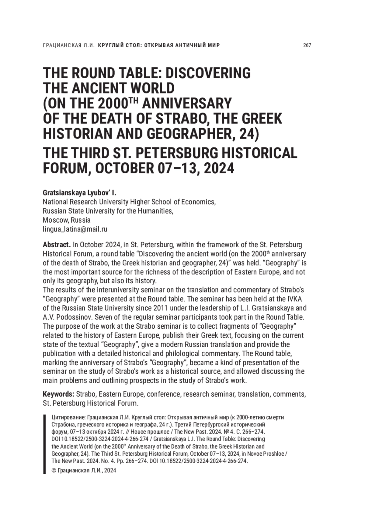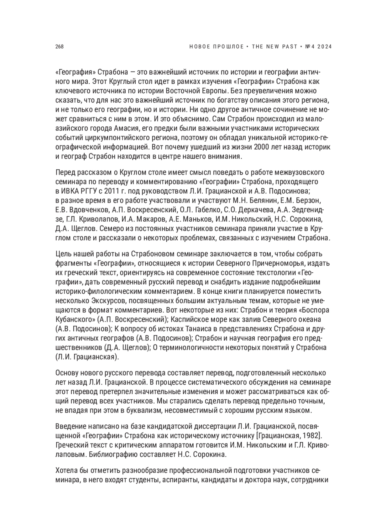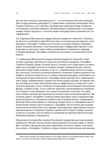В 2024 г. отмечается юбилей — 2000-летие со дня окончания труда Страбона «География». Это произведение Страбона — самое значимое, наряду с Геродотом, сочинение о географии древней Восточной Европы. Поэтому закономерно внимание к этой дате, результатом чего является данный выпуск журнала. Отзыв на книгу А. В. Подосинова «Ex oriente lux!» — символическое введение в этот номер журнала с названием «География».