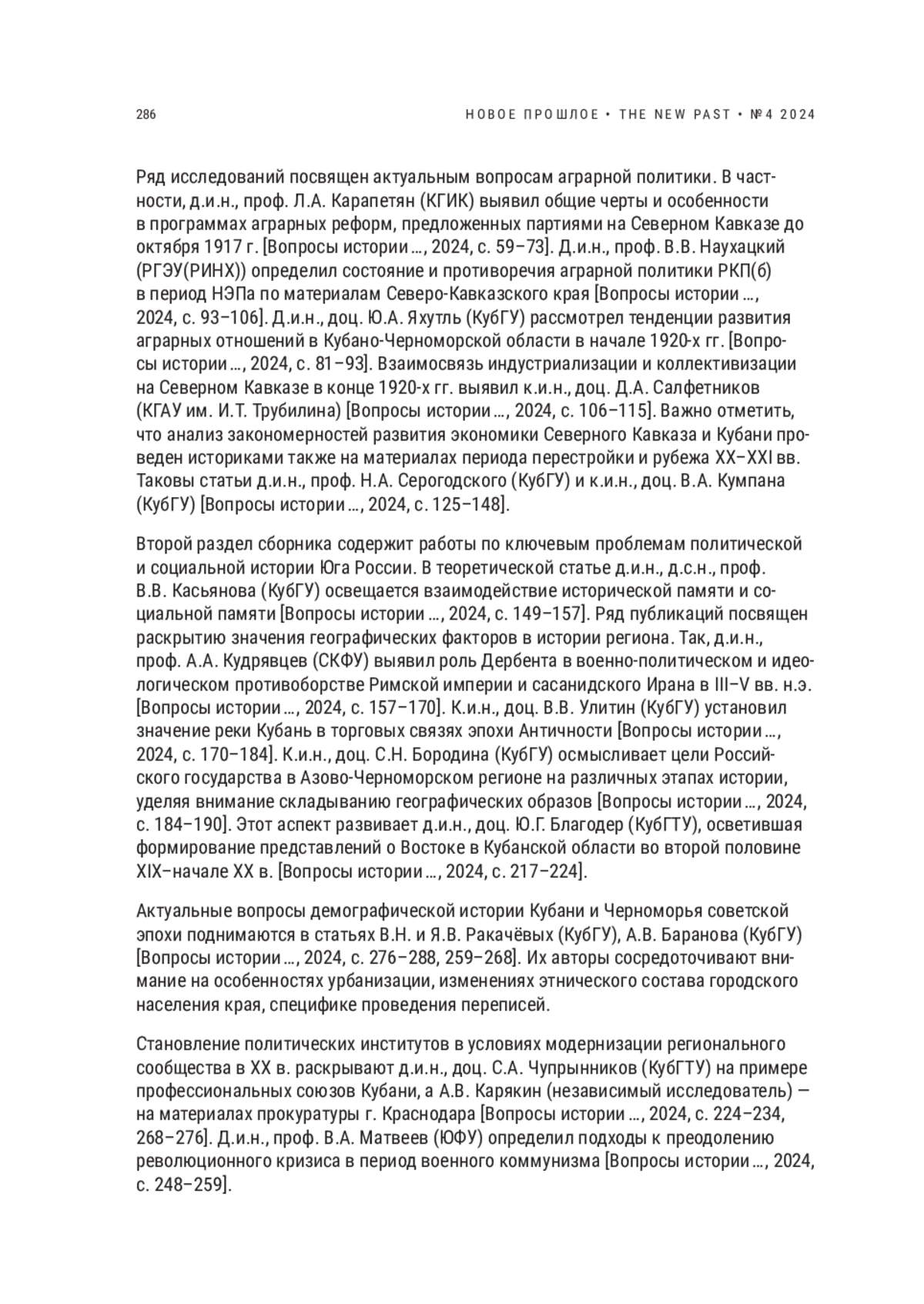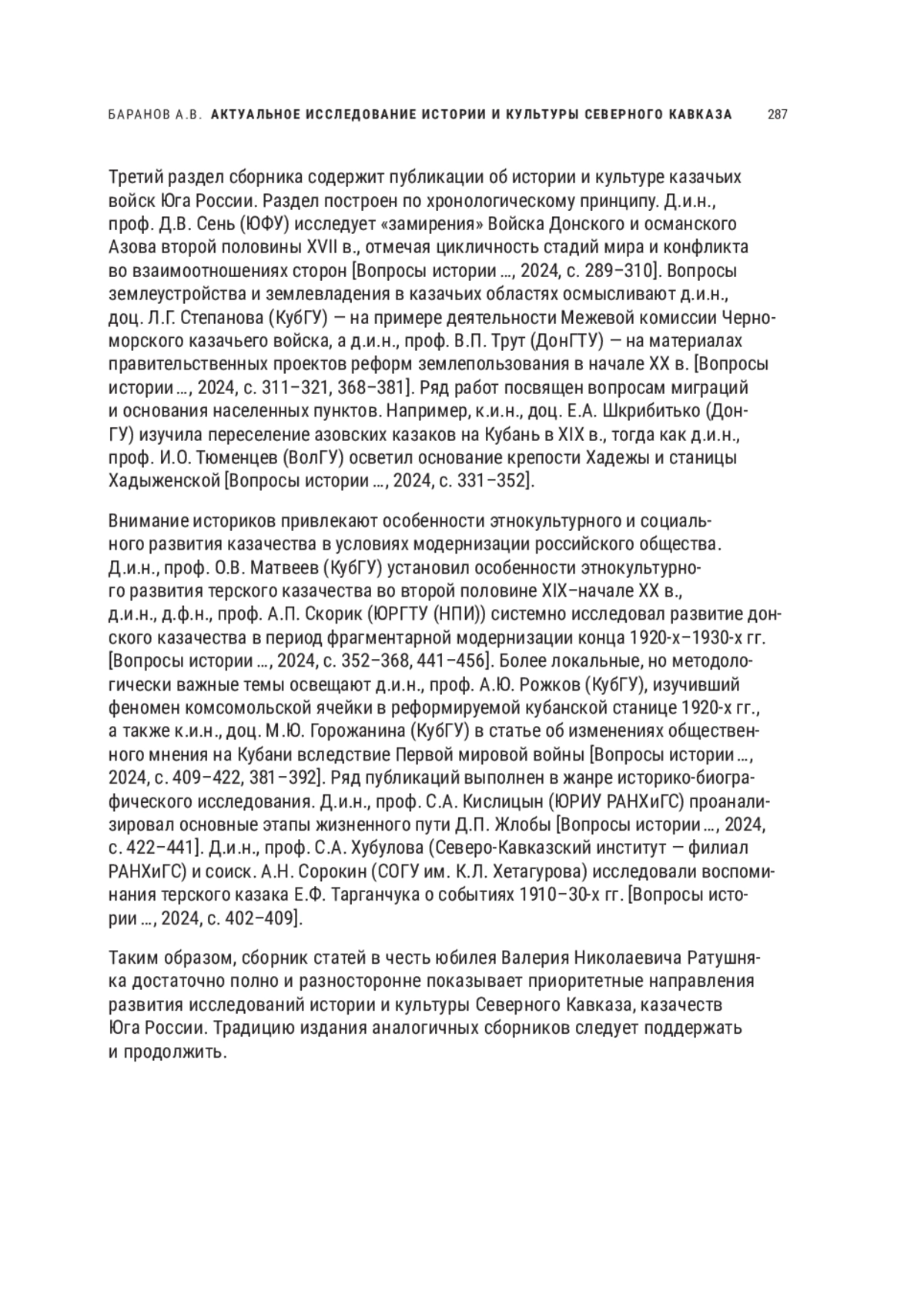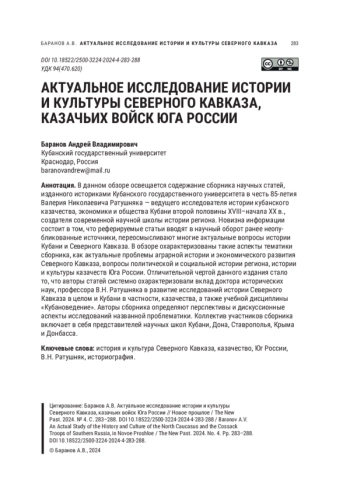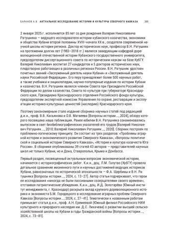 3. Вопросы истории и культуры Северного Кавказа, казачеств Юга России (к 85-летию профессора В.Н. Ратушняка): сборник научных статей. Краснодар: Кубанский гос. ун-т, 2024. 459 с.
